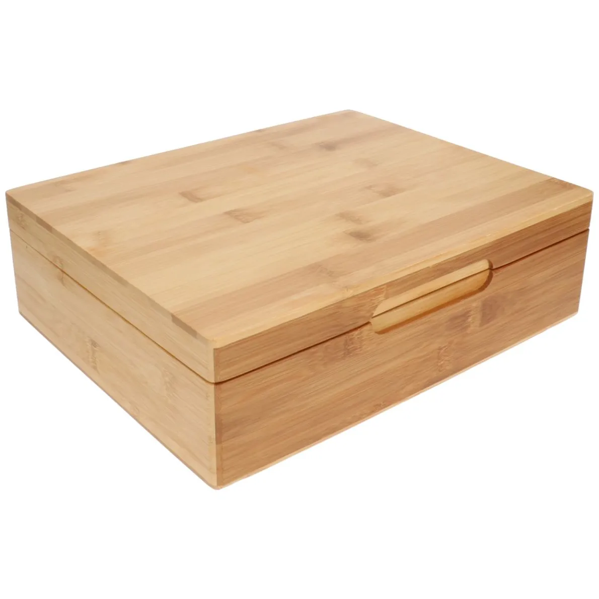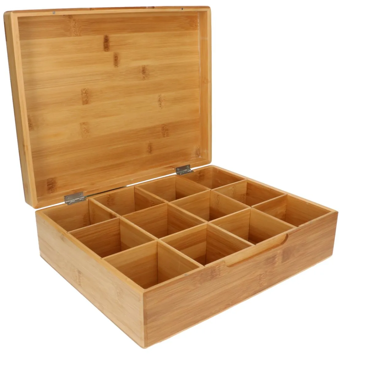 Mooi afgewerkte doos voor theezakjes, gemaakt van bamboe. In de doos kun je 12 verschillende soorten thee opbergen en presenteren. Aan de voorzijde heeft de doos een verzonken handgreep. De deksel heeft een magneetsluiting.