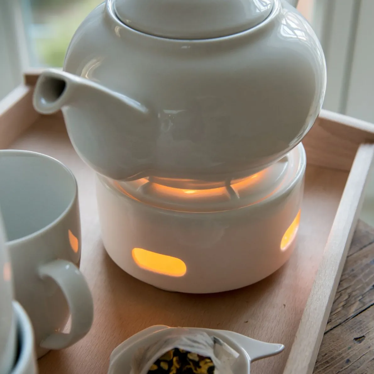 Porseleinen theelichtje voor het warmhouden van thee, zeer praktisch in het gebruik. Geschikt voor gebruik in de afwasmachine. Hoogte 7 cm, Ø ca 14 cm.