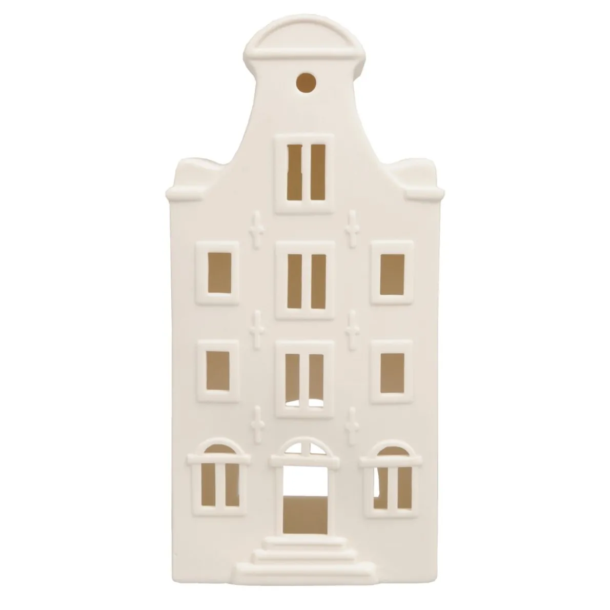 Geef je kaarsen een mooi plekje in deze waxinelichthouder in de vorm van een huis met klokgevel. Het huisje is gemaakt van wit porselein met een matte finish. Voor sfeervolle avonden in de winterse dagen en rondom Kerst!