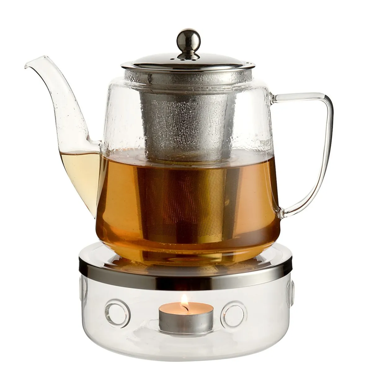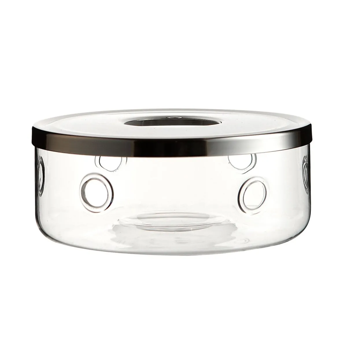 Stijlvol theelicht van hittebestendig borosilicaatglas met een roestvrijstalen afdekplaatje. Zo houd je je theepot lekker lang warm. Deze theelichthouder combineert prachtig met onze glazen theepotten.