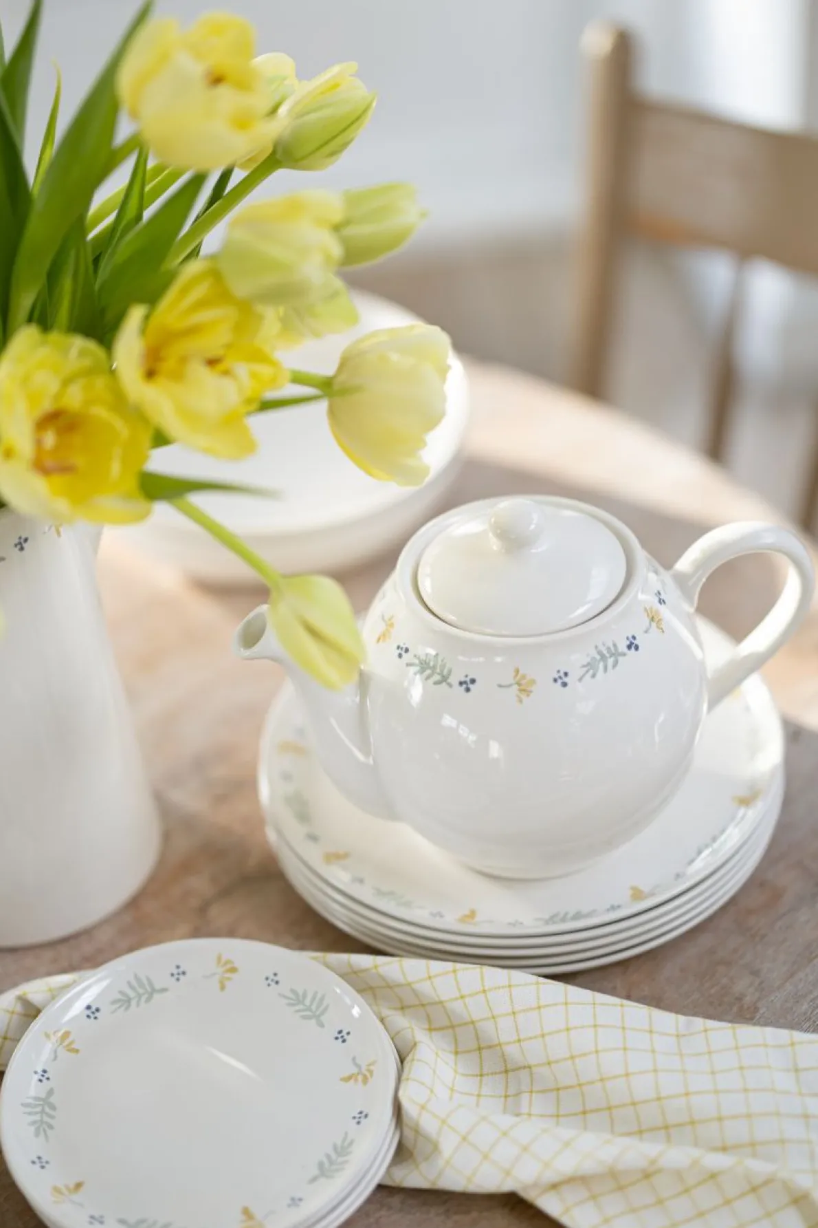 Geniet van gezellige thee-momenten met deze mooie theepot bedrukt met strooitakjes. Deze theepot is onderdeel van een serviesserie. Een mooi servies van steengoed bedrukt met strooitakjes. Steengoed is een extra sterke soort aardewerk. Het dessin is een eigen ontwerp van Dille & Kamille. Erg mooi in combinatie met de andere onderdelen van dit servies.