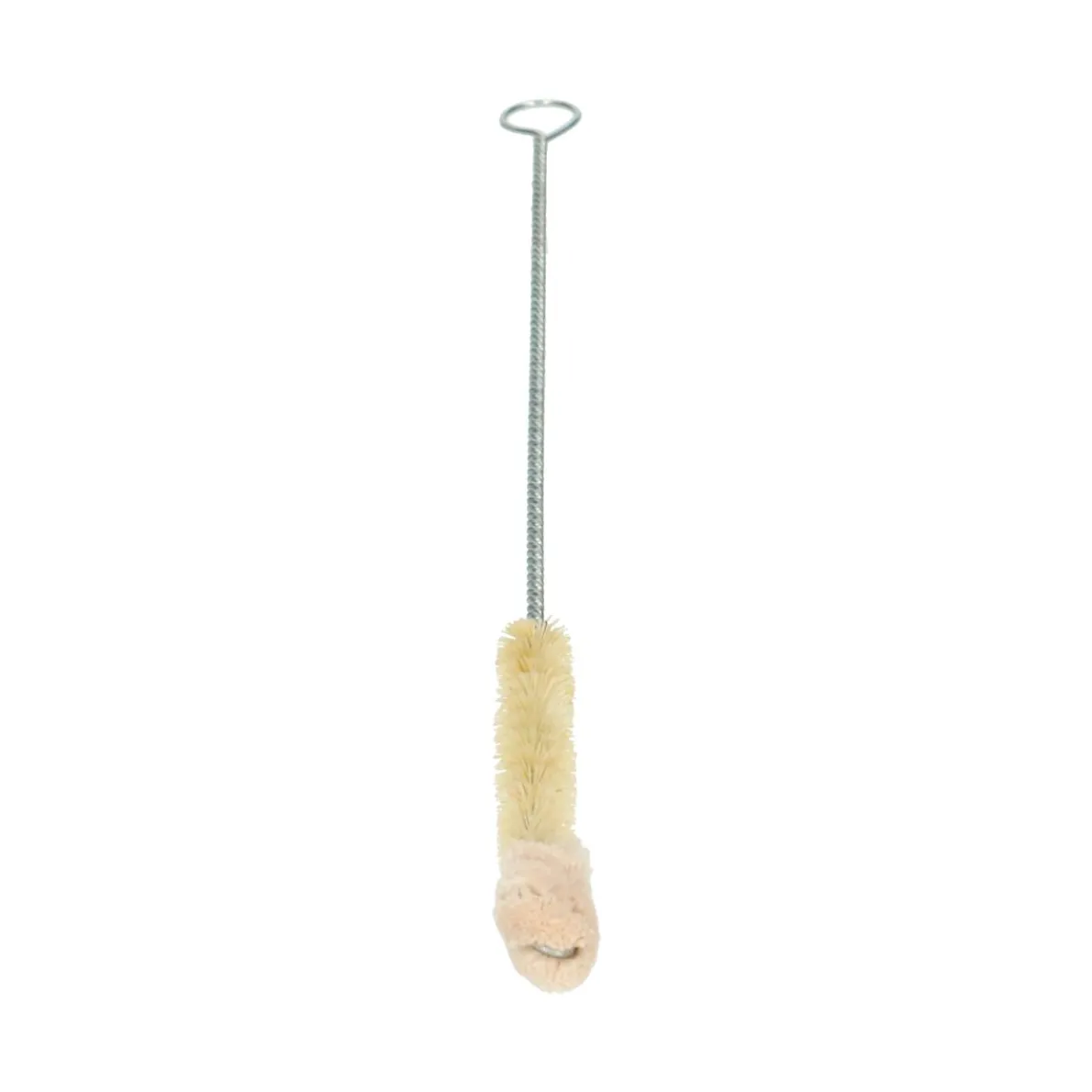 Smalle tuitenrager van gegalvaniseerd metaaldraad en tampico, een bladvezel afkomstig van de agave plant. Door het ronde uiteinde, bekleed met katoen, erg handig om niet alleen de hals, maar ook de bodem van smalle vaasjes en flesjes schoon te maken.