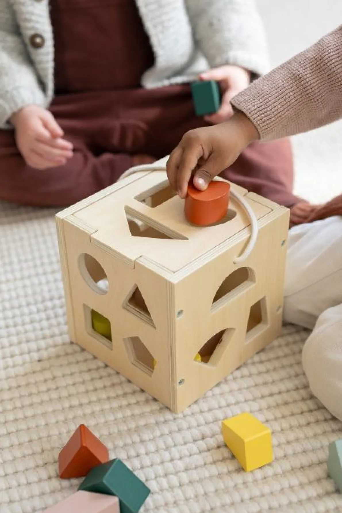 Een echte klassieker waar veel ouders mee groot zijn geworden. Onze vormenstoof heeft maar liefst 13 blokjes in verschillende kleuren en vormen. De kubus heeft rondom gaten en door de blokjes in het juiste gat te stoppen, oefenen kinderen spelenderwijs hun coördinatievaardigheden. Leuk voor kinderen vanaf 1 jaar, maar ook jongere kindjes beleven al veel plezier aan de vormenstoof.