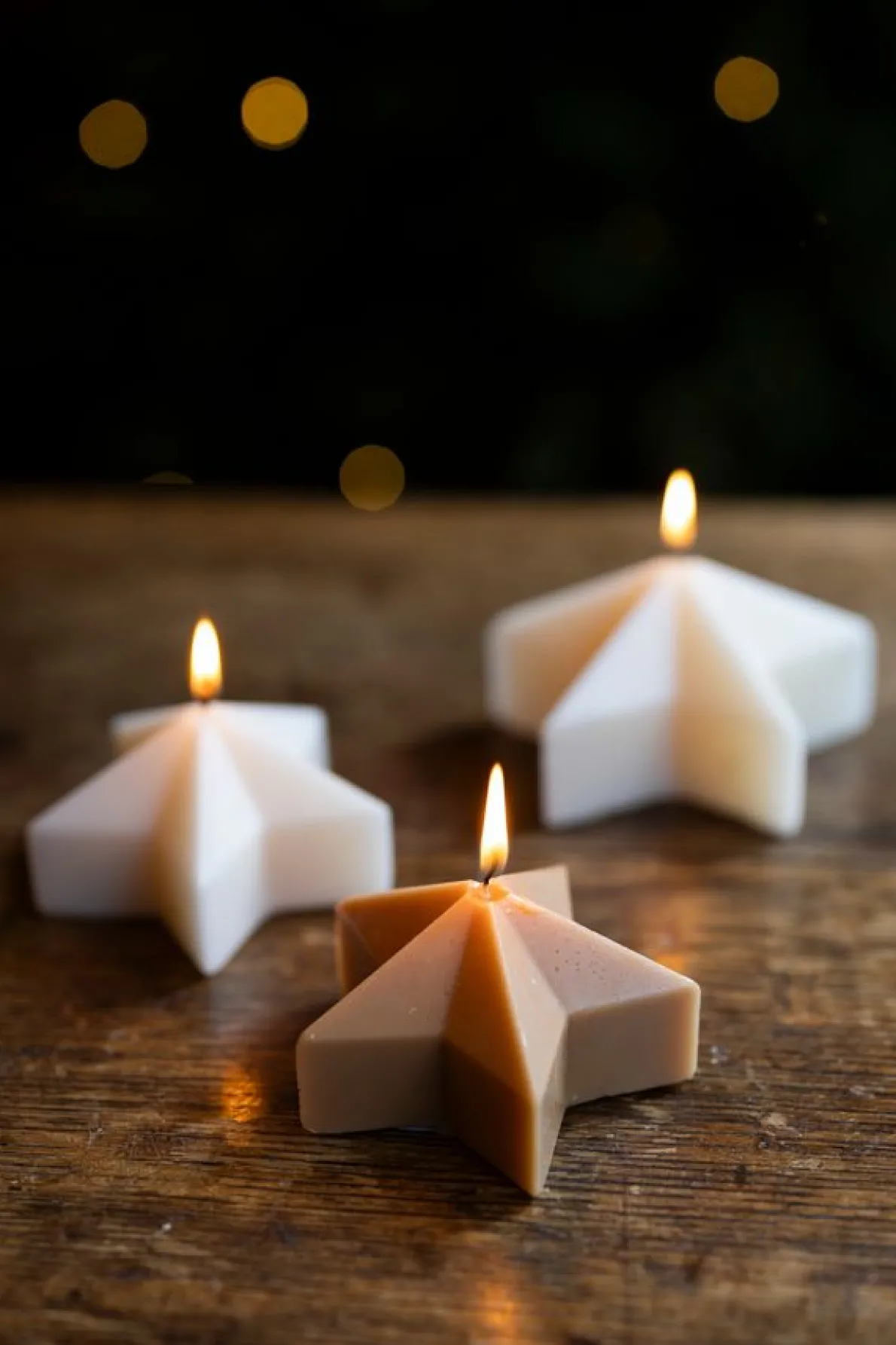 Sfeervolle offwhite kaars in de vorm van een ster. Deze sterkaars staat prachtig op bijvoorbeeld je kersttafel, alleen of gecombineerd met andere kaarsen. De kaars is door en door gekleurd. Zet deze kerstkaars altijd op een schoteltje of standaard om de ondergrond te beschermen.