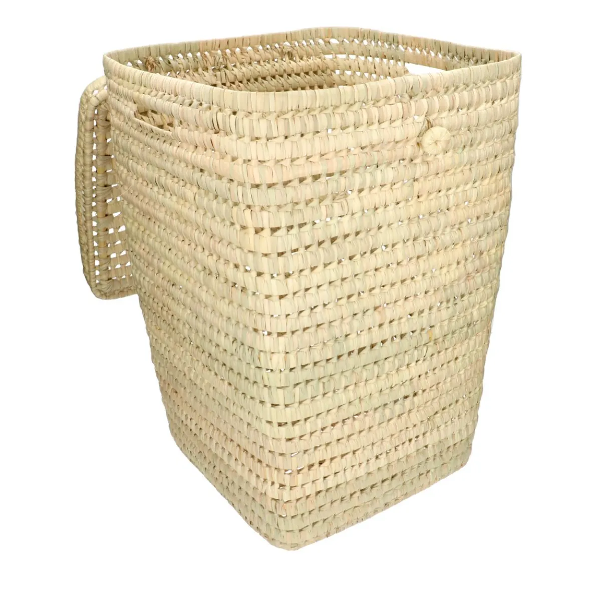 Stijlvolle vierkante wasmand van open vlechtwerk. Deze mand met deksel is met de hand gemaakt van palmblad. Ideaal voor wasgoed, maar bijvoorbeeld ook om speelgoed en andere spullen netjes in op te bergen. Met één of meerdere manden creëer je rust, sfeer en warmte in je huis. Omdat dit een handgemaakt ambachtelijk product is, kunnen de afmetingen van mand tot mand enigszins verschillen.