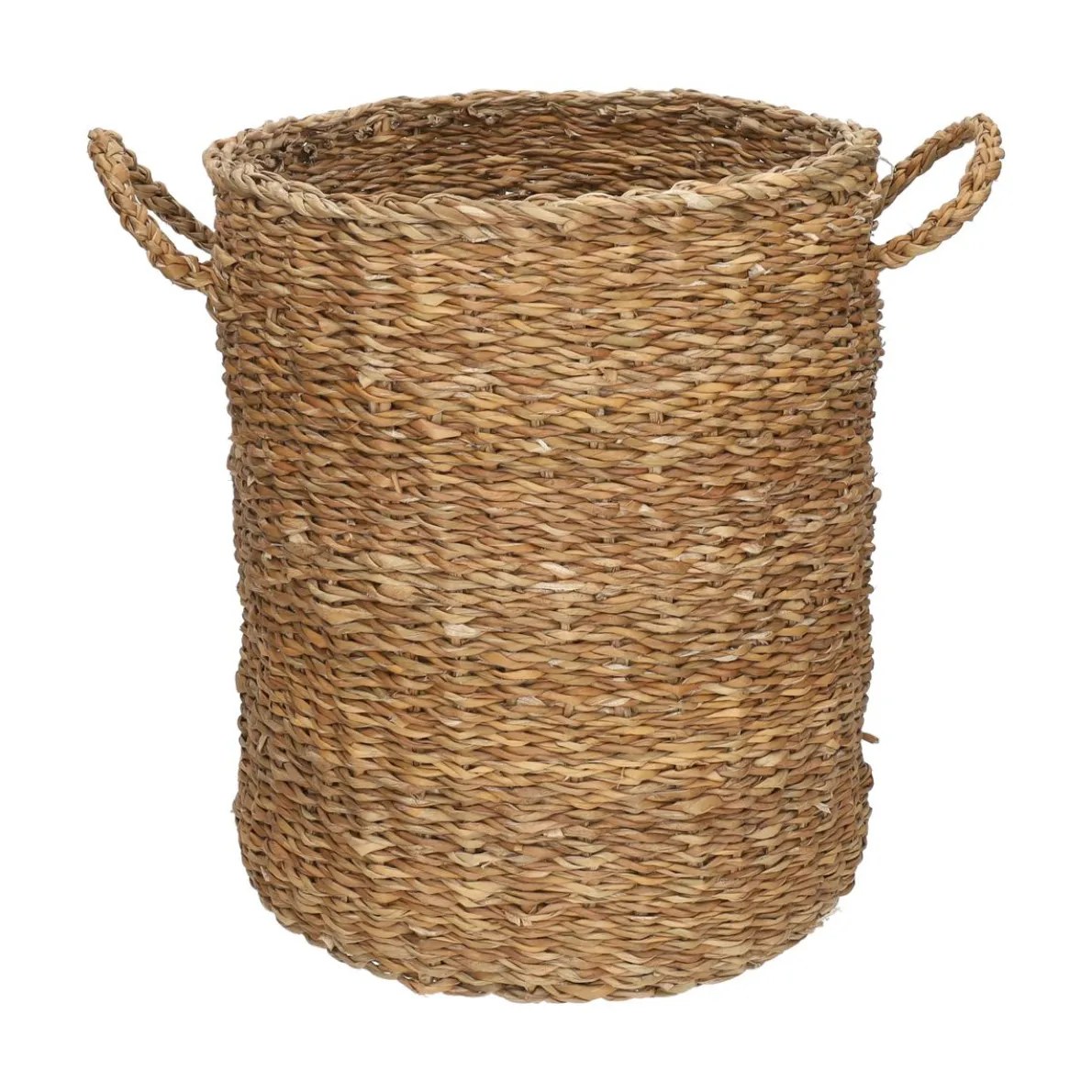 Stijlvolle, hand gevlochten ronde wasmand van zeegras met deksel. Het deksel heeft een handgreep en de rand van het deksel past over de mand. Geschikt voor wasgoed, maar bijvoorbeeld ook om speelgoed en andere spullen netjes in op te bergen. Met één of meer manden creëer je rust, sfeer en warmte in je huis.