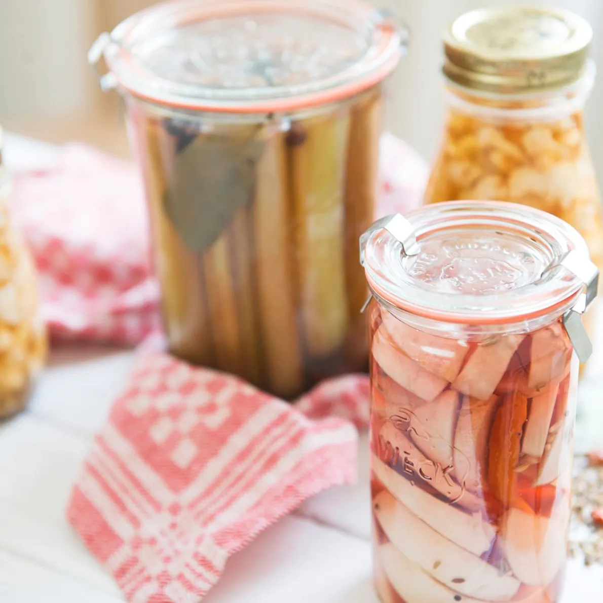 Origineel glazen ‘Weck’-pot met losse deksel, weckring en twee klemmetjes. Voor het inmaken van groenten en fruit, het bereiden van jam, chutney etc. Door aan het lipje van de rubber ring te trekken verbreek je het vacuüm na het wecken en open je de weckpot. Het extra sterke glas is bestand tegen steriliseren in oven of magnetron, en tegen hete vloeistoffen. Inhoud 750 ml, hoogte 15,5 cm, Ø 11 cm. Geschikt voor de afwasmachine.