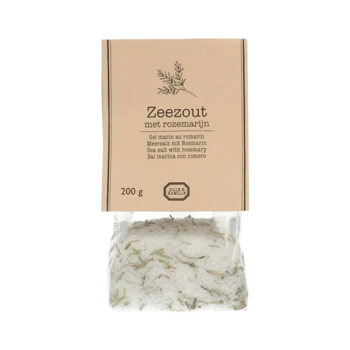 Grof zeezout met rozemarijn. Heerlijk om bijvoorbeeld Italiaanse sauzen op smaak te brengen, voor bij gegrild vlees of geroosterde groenten en aardappelpartjes.