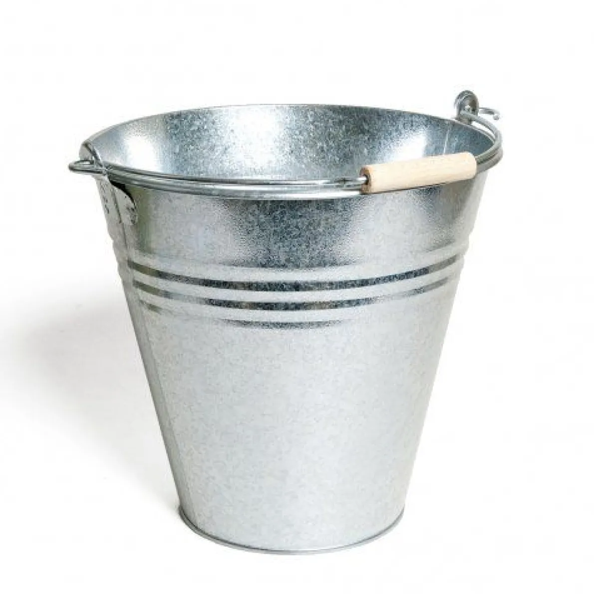 Taps toelopende zinken emmer met 3 groeven rondom en beukenhouten handvat. Handig voor in huis of in de tuin, ook erg mooi met planten. Maak, wanneer je de emmer buiten als bloempot gebruikt, onderin enkele gaten zodat het overtollige water weg kan lopen. Leg ook wat potscherven op de bodem voordat je de emmer vult met potgrond. Hoogte 28 cm, Ø bovenzijde 29 cm. Lengte handvat 8cm.