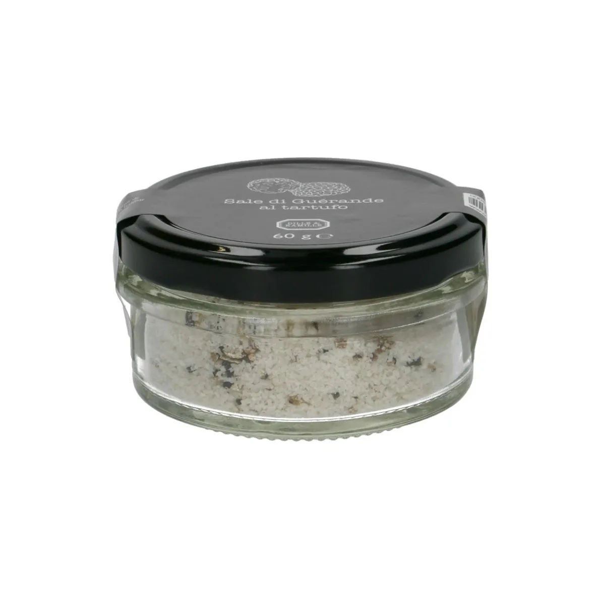 De basis voor deze fijne mix is Guérande zeezout: handmatig gewonnen in het Franse Bretagne. Gebruik — samen met extra vierge olijfolie — als luxe brooddip. Ook heerlijk over pizza, pasta en gegrilde vlees-, vis- en groentegerechten. Guérande zeezout is van hoge kwaliteit en zacht van smaak. Tip: Truffelzout is ook heerlijk over frietjes en vers gepofte popcorn.