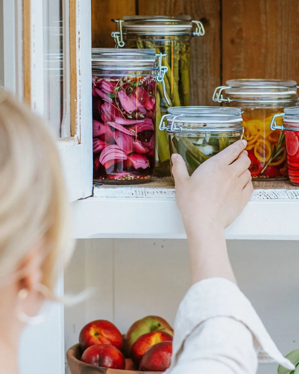 Glazen pot met beugelsluiting. Ideaal voor het luchtdicht opbergen van koffie, rijst, pasta etc.. Ook voor het op alcohol of siroop bewaren van vruchten.