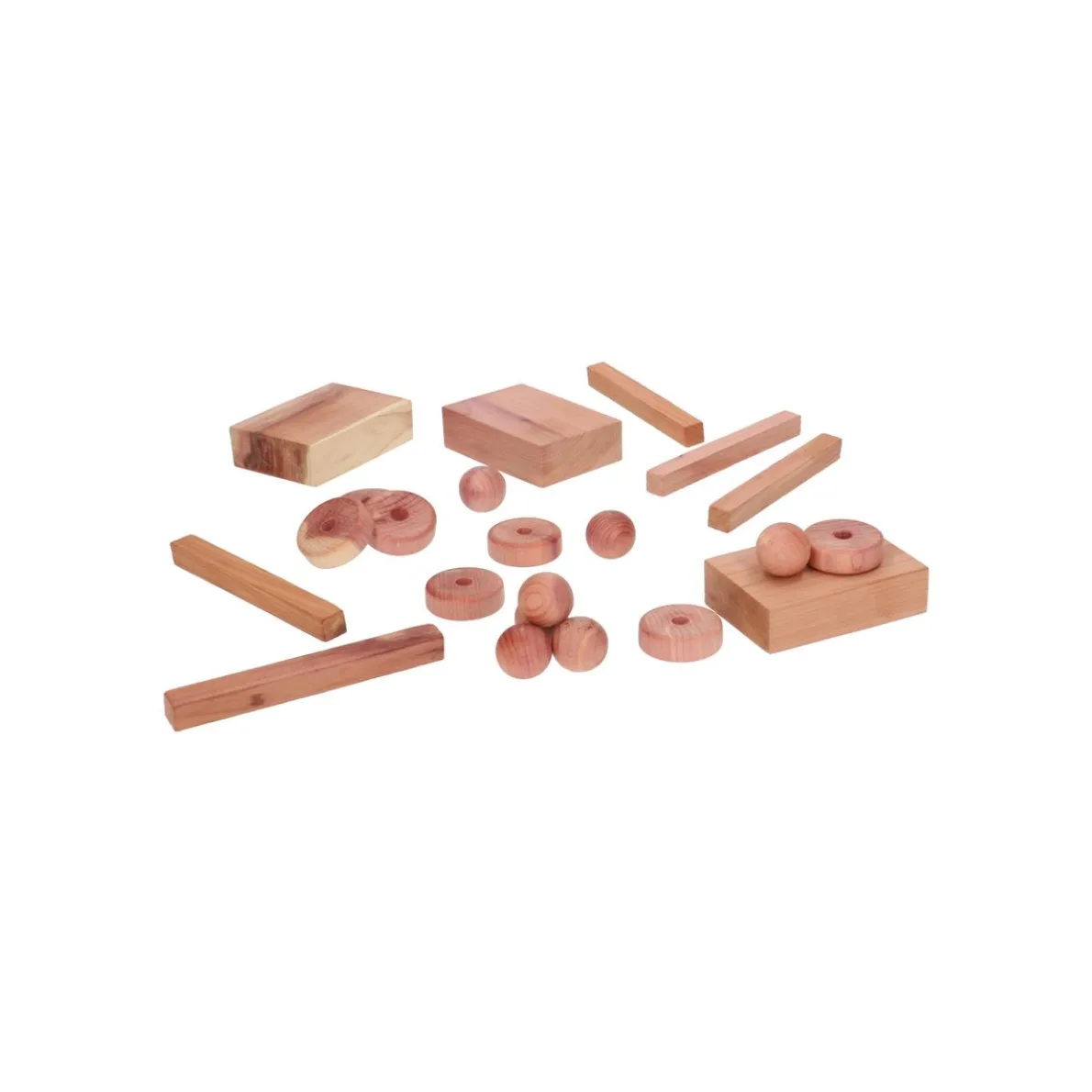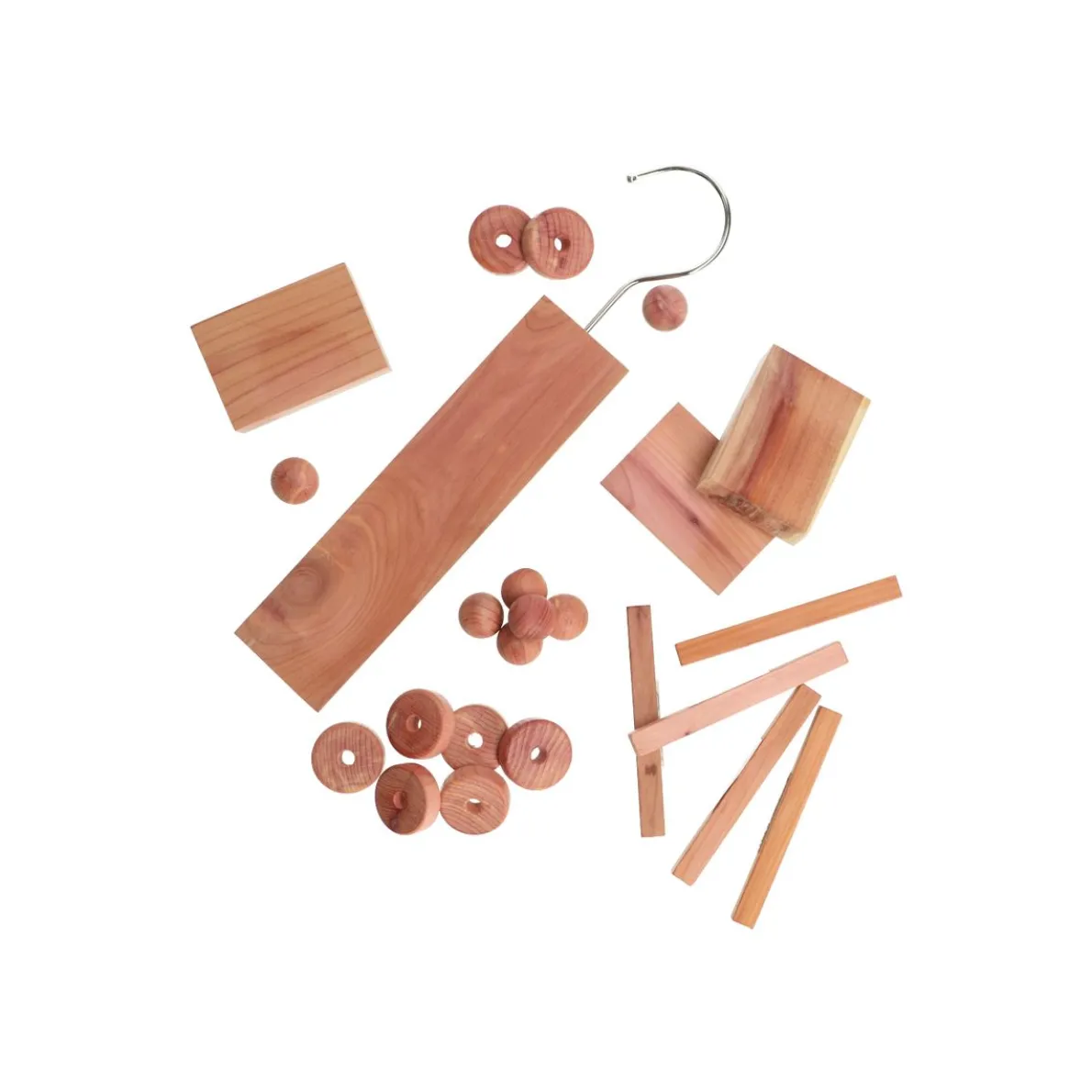 Het hout van Rode ceder ruikt niet alleen heerlijk, het neemt ook vocht op en houdt je kast fris. Ideaal als je in de zomermaanden je winterkleding opbergt. Leg dit cederhouten blokje tussen je wollen truien en linnengoed in de kast. Maar ook onder kussens en matrassen, in opbergdozen en koffers om alles goed droog en fris te houden.