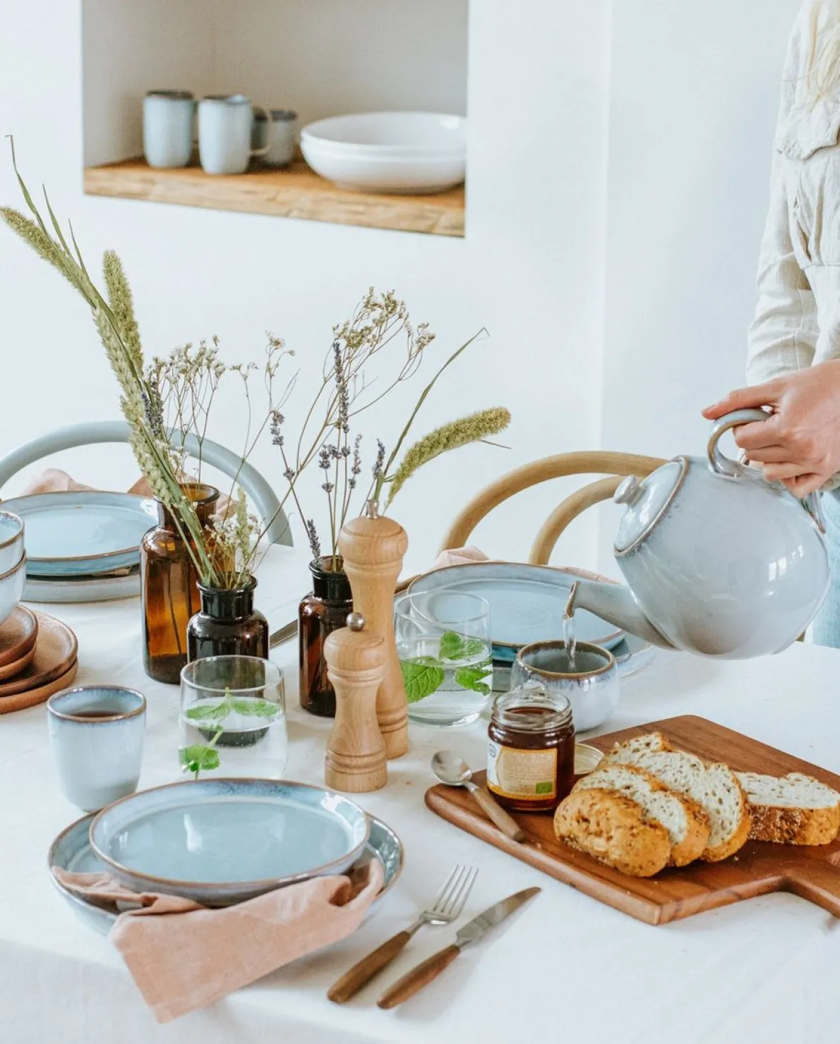 Dit prachtige steengoed servies in tijdloze kleuren, heeft een reactieve glazuur. Door deze glazuur ontstaat een bijzonder kleurpatroon waardoor ieder item er uniek uitziet en het servies extra glans geeft aan een mooi gedekte tafel.