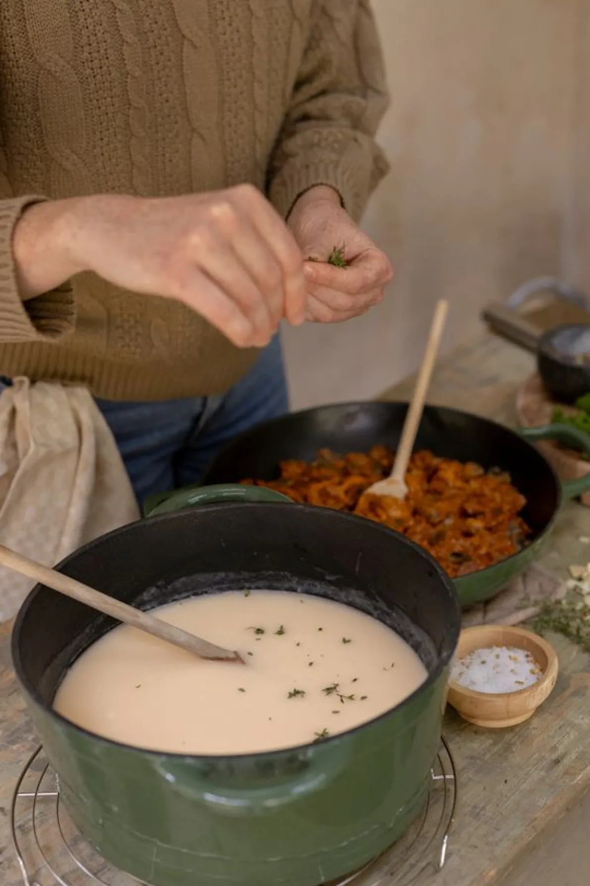 Deze robuuste braadpan is gemaakt van gegoten ijzer, afgewerkt met een sterke, dubbele emaillelaag: matzwart van binnen en glanzend groen aan de buitenkant. Gietijzer neemt hitte gelijkmatig op en houdt deze lang vast, ideaal dus voor allerlei bereidingen. Braden, sudderen en stoven uiteraard, maar een brood bakken kan ook. Stoom uit het gerecht condenseert tegen het deksel en druppelt via de ‘bolletjes’ terug in de pan. Alles blijft zo mals en sappig. Een pan om jarenlang plezier van te hebben!