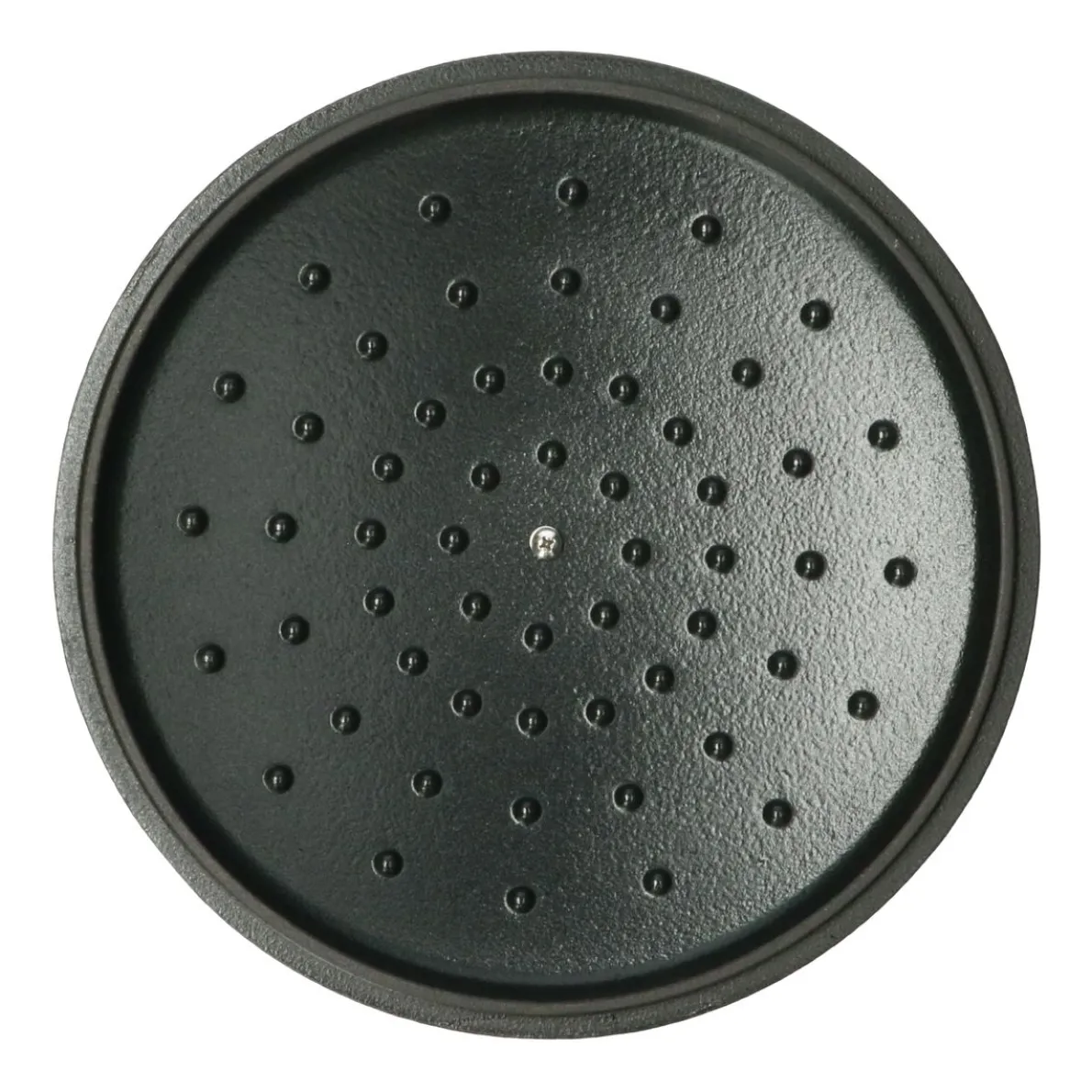 Deze grote, robuuste braadpan is gemaakt van gegoten ijzer, afgewerkt met een sterke, dubbele emaillelaag: matzwart van binnen en glanzend groen aan de buitenkant. Gietijzer neemt hitte gelijkmatig op en houdt deze lang vast, ideaal dus voor allerlei bereidingen. Braden, sudderen en stoven uiteraard, maar een brood bakken kan ook. Stoom uit het gerecht condenseert tegen het deksel en druppelt via de ‘bolletjes’ terug in de pan. Alles blijft zo mals en sappig. Een pan om jarenlang plezier van te hebben!