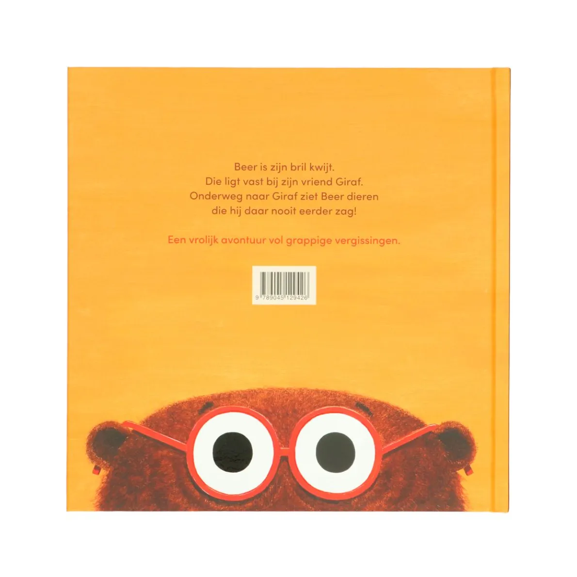Beer gaat op zoek naar zijn bril. Hij moet hem terugvinden! Misschien weet Giraf waar hij is gebleven? Onderweg naar zijn vriend ziet Beer allerlei dieren die er eerder niet waren. Een olifant, een krokodil, een flamingo, een hert. Hoe kan dat nu? En wie is die lange slungel met vlekken eigenlijk? Dat kan toch Giraf niet zijn?