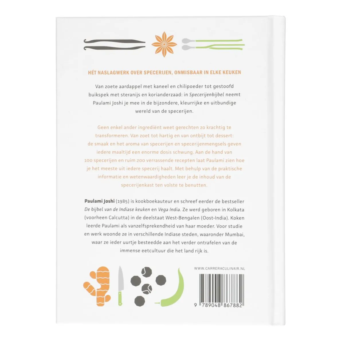 “Van anijskoeken tot crispy chili-olie en van kaneelbroodjes tot romige dragonkip: in Specerijenbijbel neemt Paulami Joshi je mee in de bijzondere, kleurrijke en uitbundige wereld van de specerijen.Geen enkel ander ingrediënt weet gerechten zo krachtig te transformeren. Van zoet tot hartig en van ontbijt tot dessert; de smaak en het aroma van specerijen en specerijenmengsels geven iedere maaltijd een enorme oppepper. Aan de hand van 100 specerijen en ruim 200 verrassende recepten voor ieder moment van de dag, laat Paulami zien hoe je het meeste uit iedere specerij haalt. Met behulp van de praktische informatie en weetjes leer je de inhoud van de specerijenkast ten volste te benutten.”