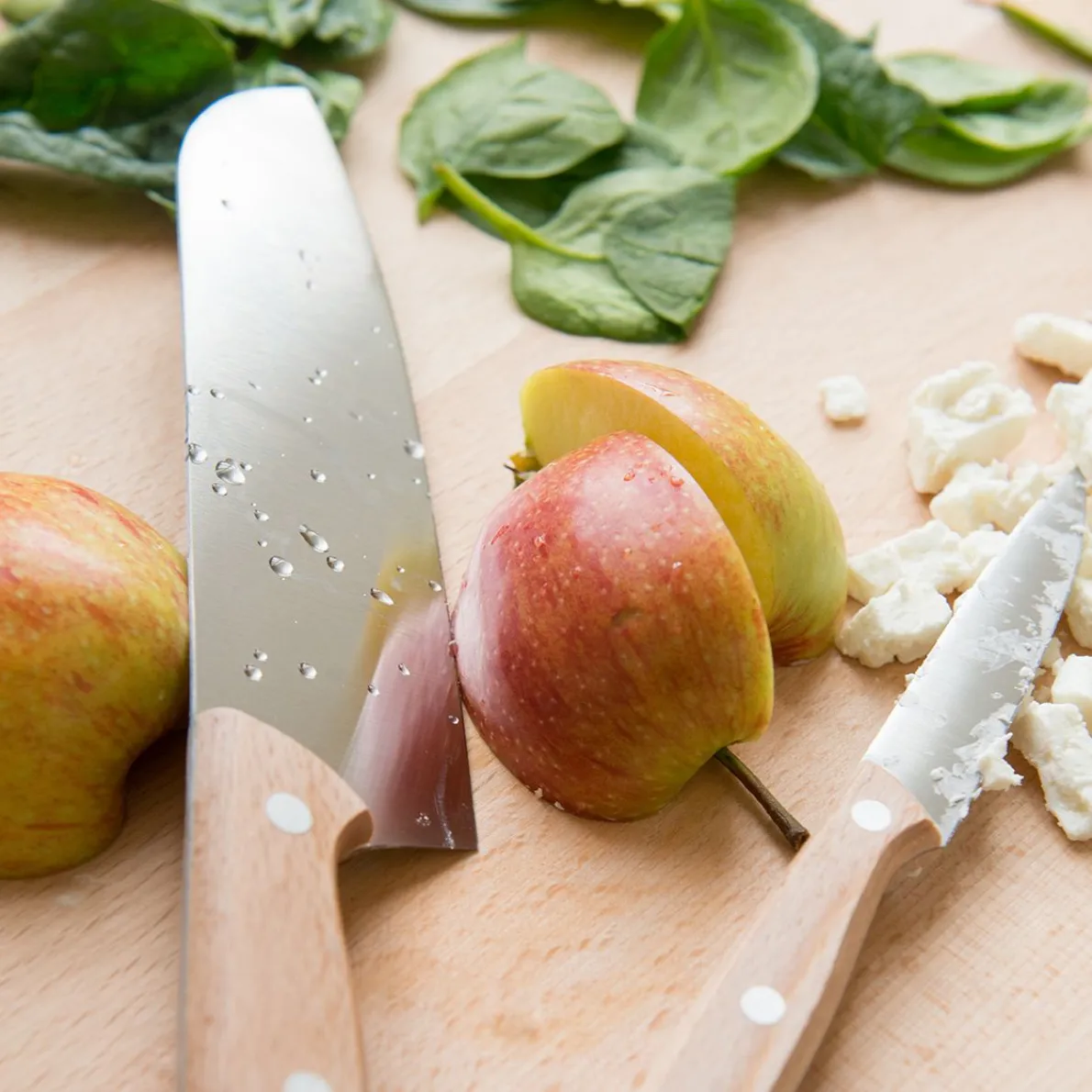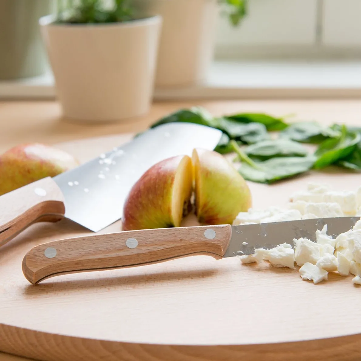Klein officemes voor het schoonmaken (schillen, schrappen en snijden) van groenten en fruit. Door het licht gebogen lemmet ook ideaal voor het fijnsnijden van bv. knoflook, gember of pepertjes. Lemmet roestvast. Met beukenhouten handvat, ligt zeer prettig in de hand. Je mes blijft het mooist als het met de hand wordt afgewassen. Lengte 20 cm, lemmet 9 cm.