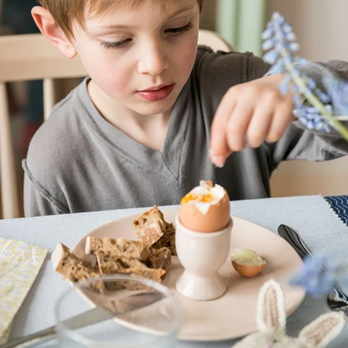 Klassiek eierdopje op voet, porselein. Geschikt voor de afwasmachine, vriezer en oven. Hoogte 6,5 cm, Ø 4,5 cm.
