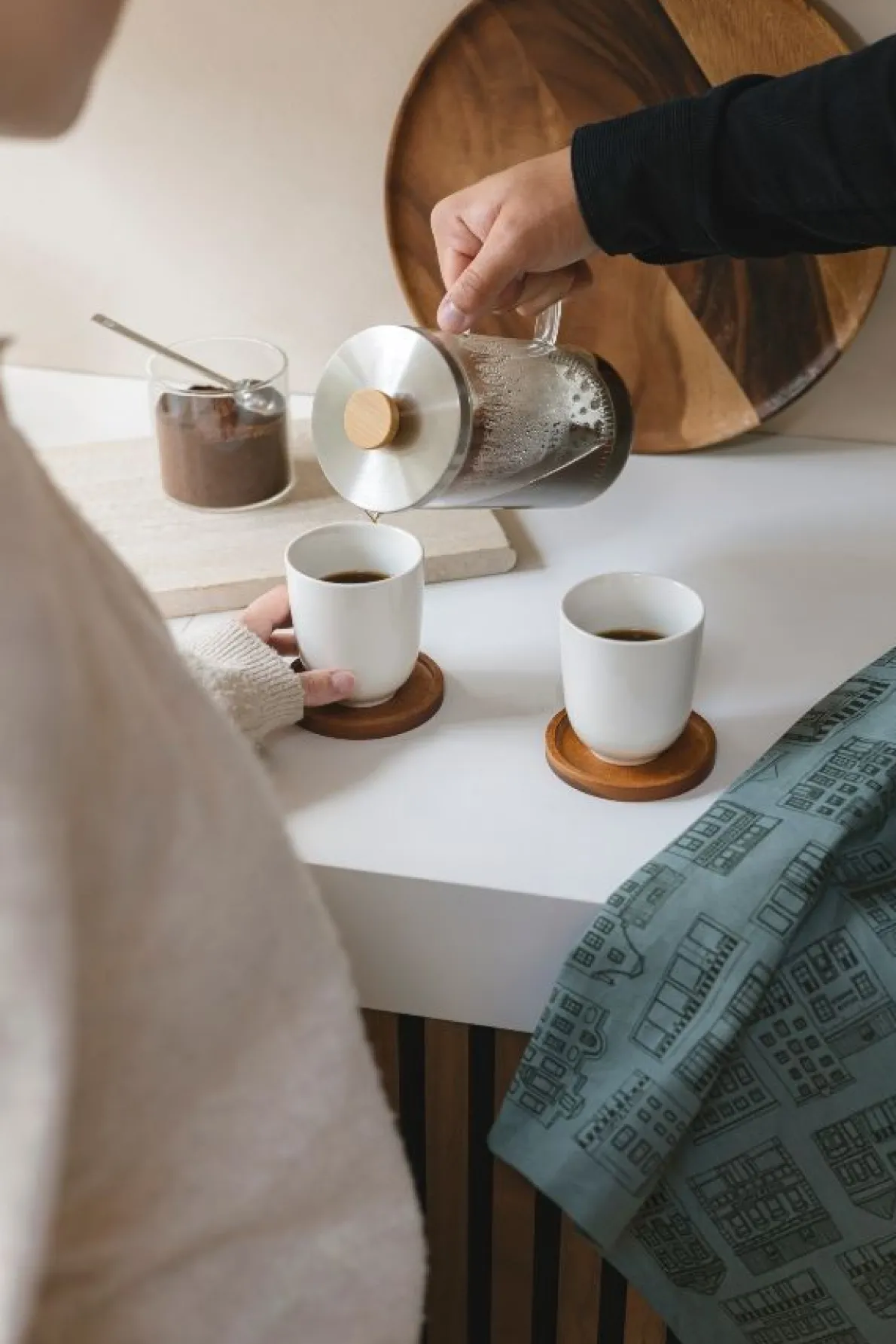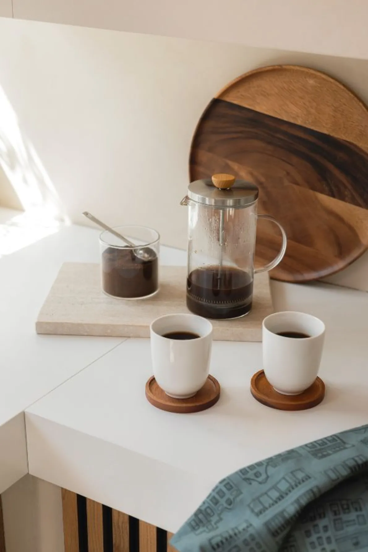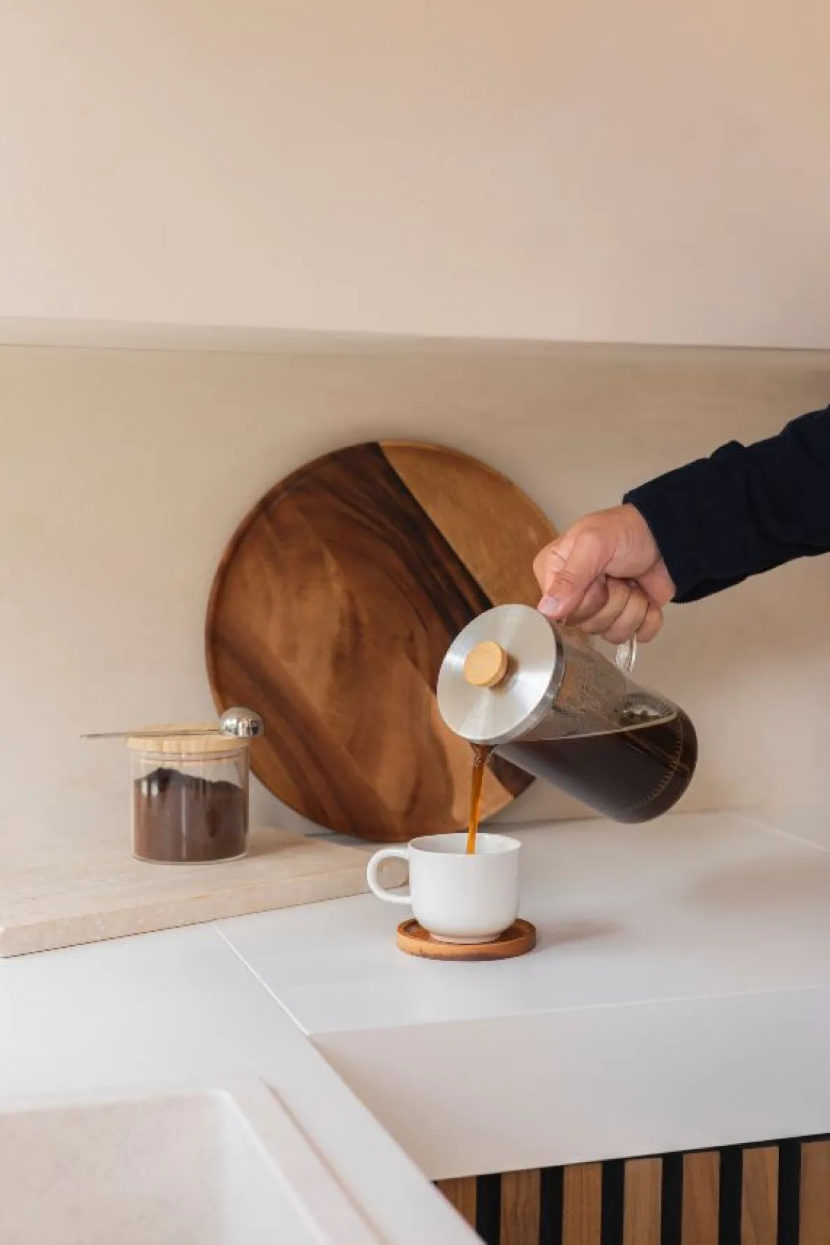 Om de lekkerste koffie of thee te zetten: zonder papieren filter, voor optimaal behoud van smaak. Doe koffie (filtermaling) of losse thee in de kan en giet er water over dat net van de kook af is. Laat enige minuten trekken en druk de zeef dan rustig naar beneden.