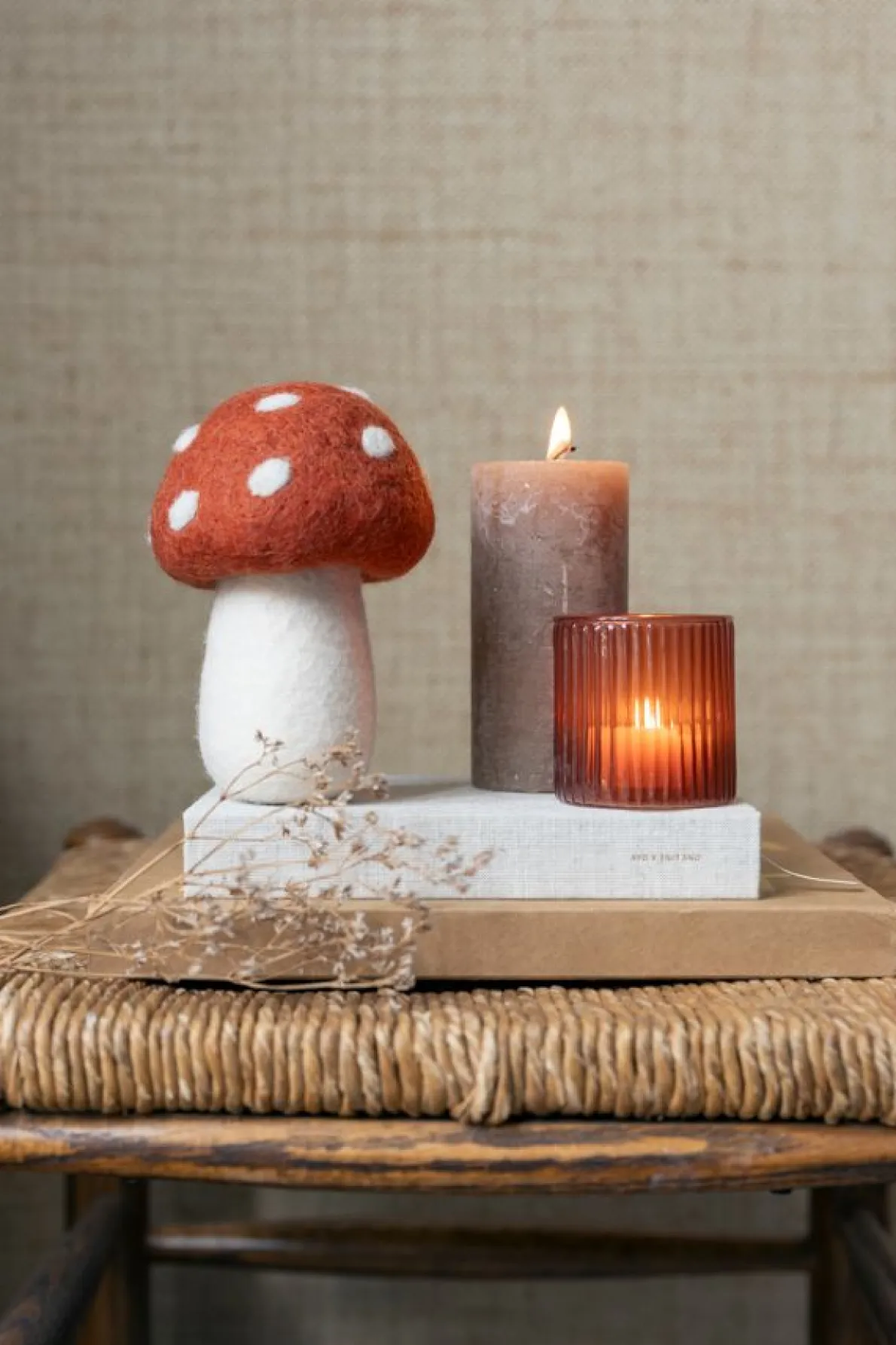 De herfst is hét seizoen om het binnen extra gezellig te maken. Met deze grote staande paddenstoel van vilt bijvoorbeeld, rood met witte stippen. Hiermee maak je zo een knus en sfeervol herfsthoekje in je huis! Combineer de paddenstoel bijvoorbeeld met andere vilten figuurtjes en eigen herfstige natuurvondsten zoals kastanjes en mooi verkleurde bladeren. Omdat dit een handgemaakt product is, kunnen de afmetingen en kleuren van paddenstoel tot paddenstoel enigszins verschillen. Deze paddenstoel is speciaal ontworpen voor Dille & Kamille en met de hand gemaakt door vrouwen in Nepal, van Nieuw-Zeelandse schapenwol. Onze vaste leverancier van prachtige Fair Trade vilten artikelen helpt hen om hun sociale en economische positie en die van hun gezin te verbeteren. Dit biedt, behalve een vast inkomen, ook een veilige werkplek.