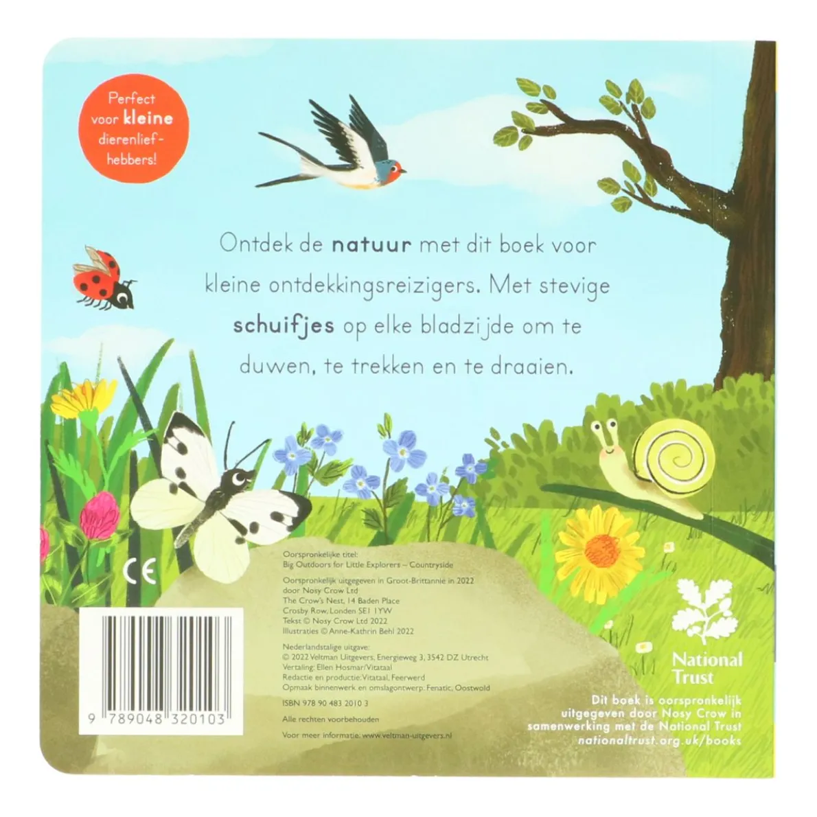Ontdek de natuur met dit boek voor kleine ontdekkingsreizigers. Met stevige schuifjes op elke bladzijde om te duwen, te trekken en te draaien. Met schuifjes op elke bladzijde. Ontdek samen met je kleintje de prachtige natuur.