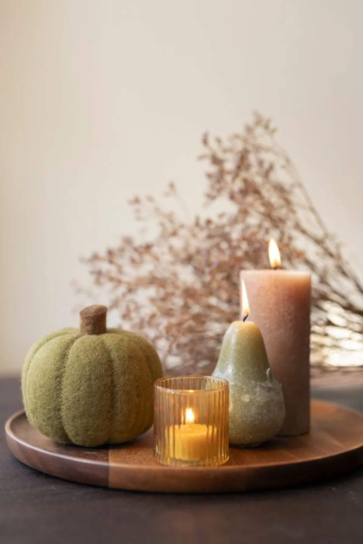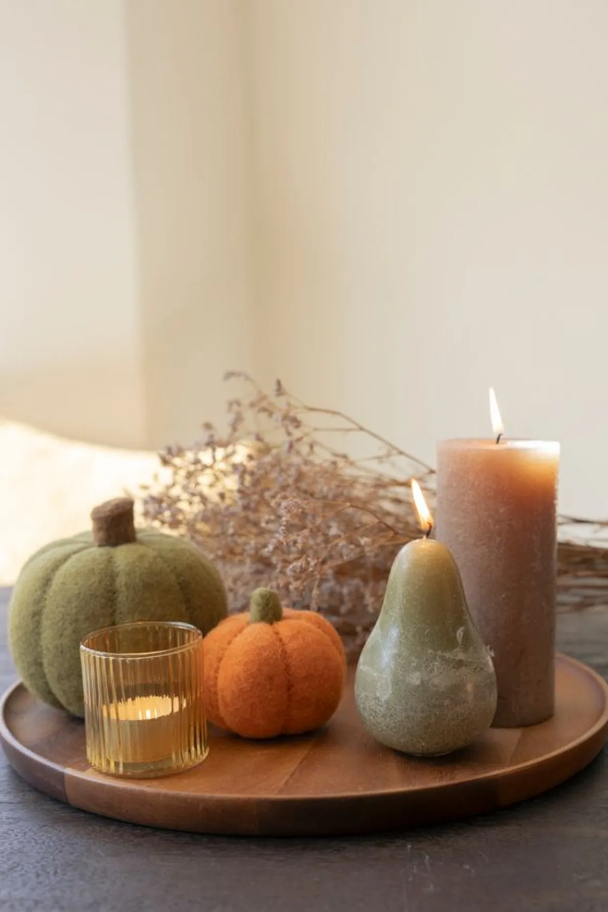Sfeervolle kaars in de vorm van een peer. Mooi alleen, maar ook in een groepje, bijvoorbeeld met onze dinerkaarsen of andere vormkaarsen in verschillende maten en tinten. Zet deze kaars altijd op een passende standaard of schotel om de ondergrond te beschermen.