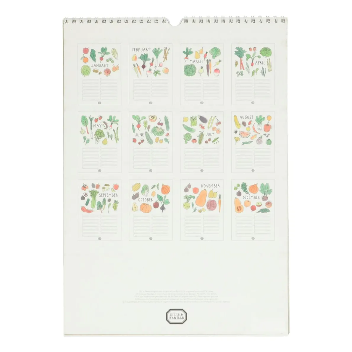 Vergeet nooit meer een verjaardag met deze kalender met vrolijke illustraties van groente en fruit. Leuk voor in de keuken!
