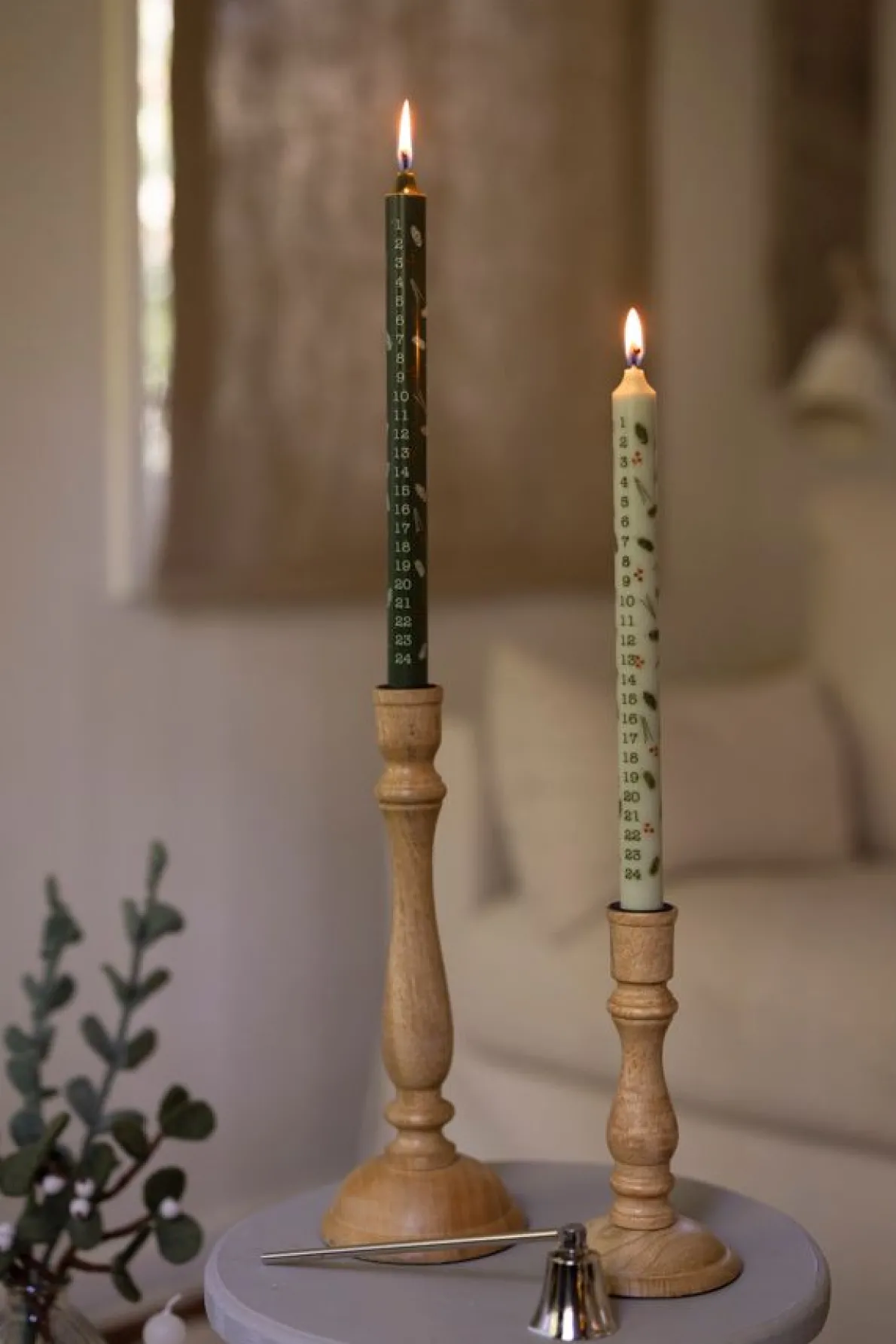 Mooi gemaakte, klassieke hoge kaarsenstandaard van gedraaid mangohout. De kandelaar is geschikt voor onze dinerkaarsen. Mangohout heeft een aantrekkelijke, warme uitstraling. Het is afkomstig van de mangoboom. Deze groeit in (sub)tropisch klimaat. Als de bomen geen vruchten meer geven, wordt het hout gebruikt om mooie dingen van te maken. Let op: laat een kaars niet onbewaakt branden en stop met het branden van de kaars als er nog ongeveer 2 cm over is boven de rand van de kandelaar.