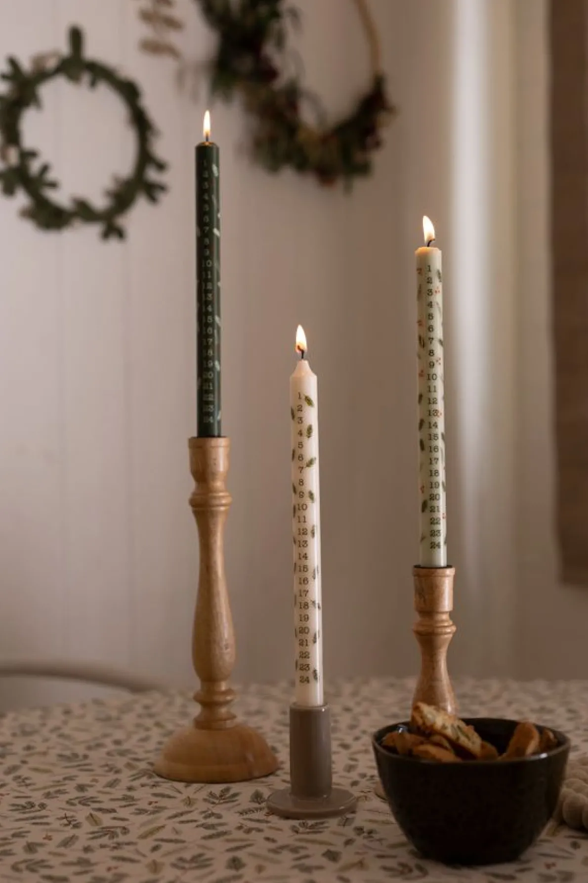 Mooi gemaakte, klassieke hoge kaarsenstandaard van gedraaid mangohout. De kandelaar is geschikt voor onze dinerkaarsen. Mangohout heeft een aantrekkelijke, warme uitstraling. Het is afkomstig van de mangoboom. Deze groeit in (sub)tropisch klimaat. Als de bomen geen vruchten meer geven, wordt het hout gebruikt om mooie dingen van te maken. Let op: laat een kaars niet onbewaakt branden en stop met het branden van de kaars als er nog ongeveer 2 cm over is boven de rand van de kandelaar.