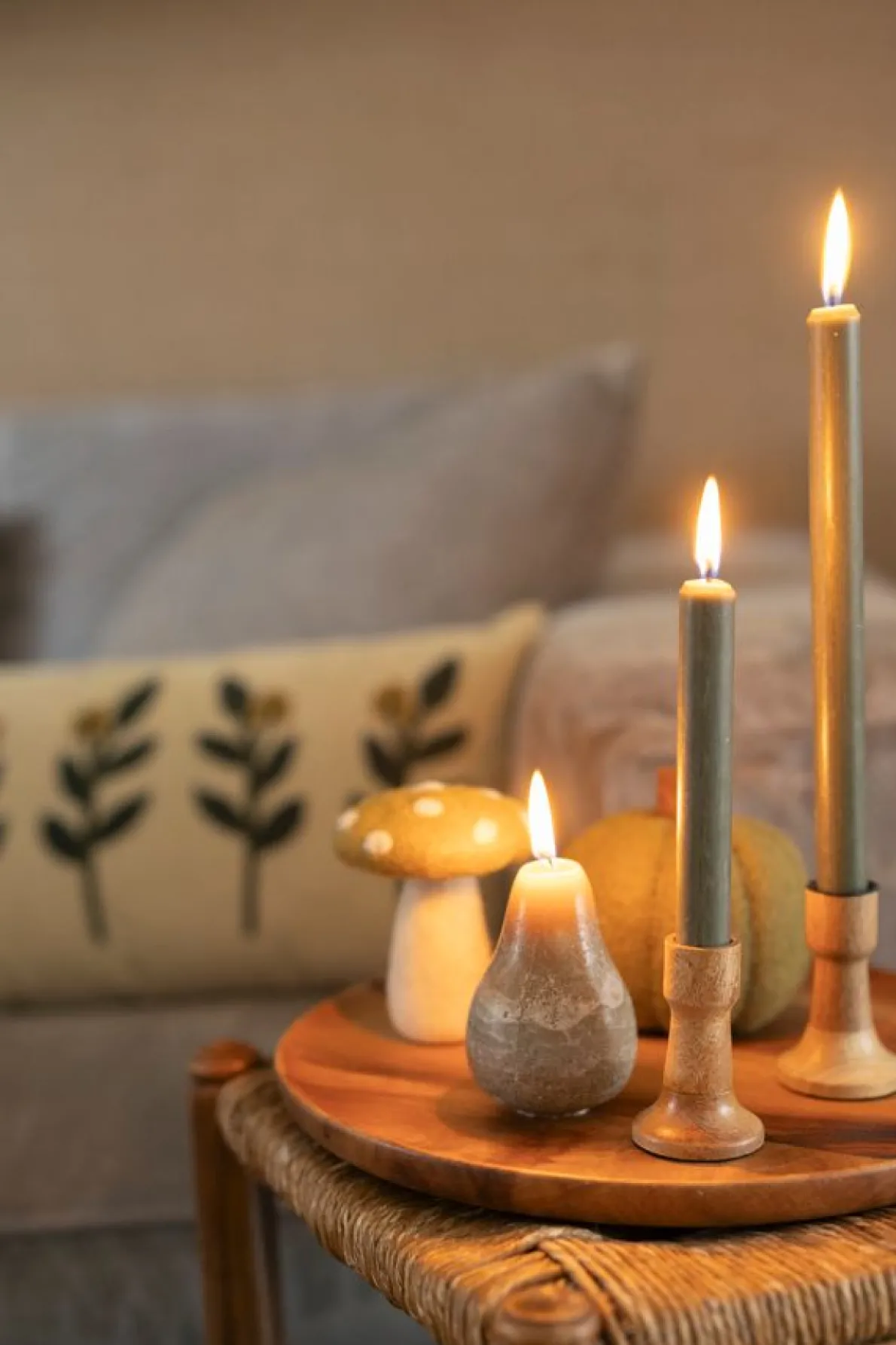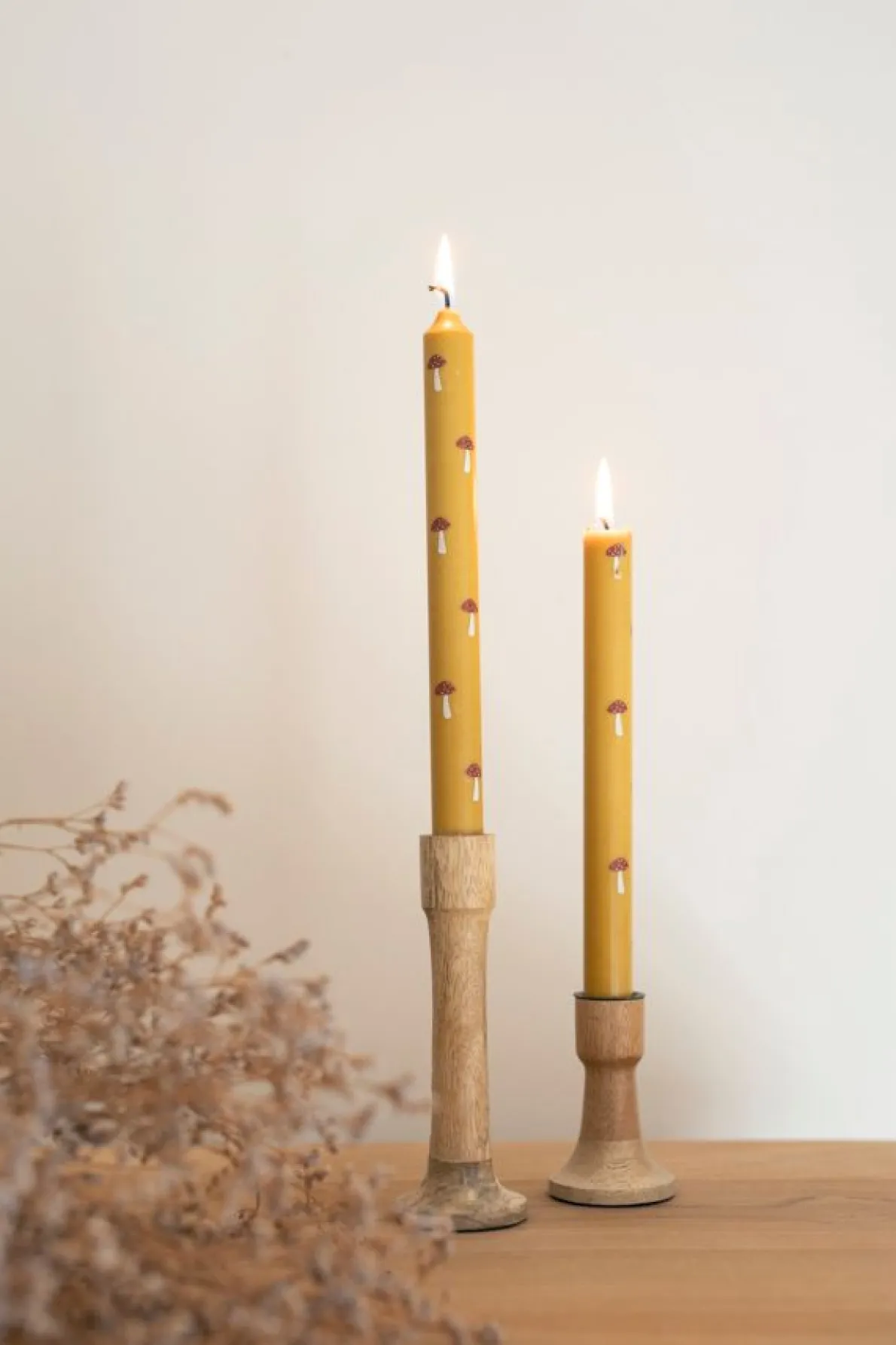 Mooi gemaakte, klassieke lage kaarsenstandaard van gedraaid mangohout. De kandelaar is geschikt voor onze dinerkaarsen. Mangohout heeft een aantrekkelijke, warme uitstraling. Het is afkomstig van de mangoboom. Deze groeit in (sub)tropisch klimaat. Als de bomen geen vruchten meer geven, wordt het hout gebruikt om mooie dingen van te maken. Let op: laat een kaars niet onbewaakt branden en stop met het branden van de kaars als er nog ongeveer 2 cm over is boven de rand van de kandelaar.