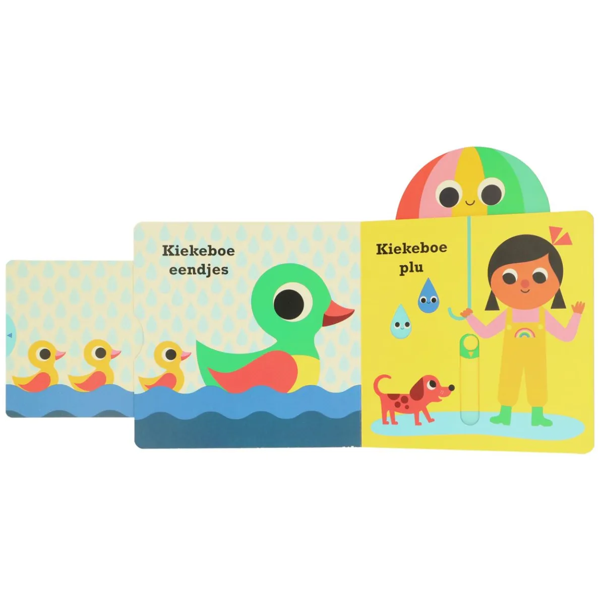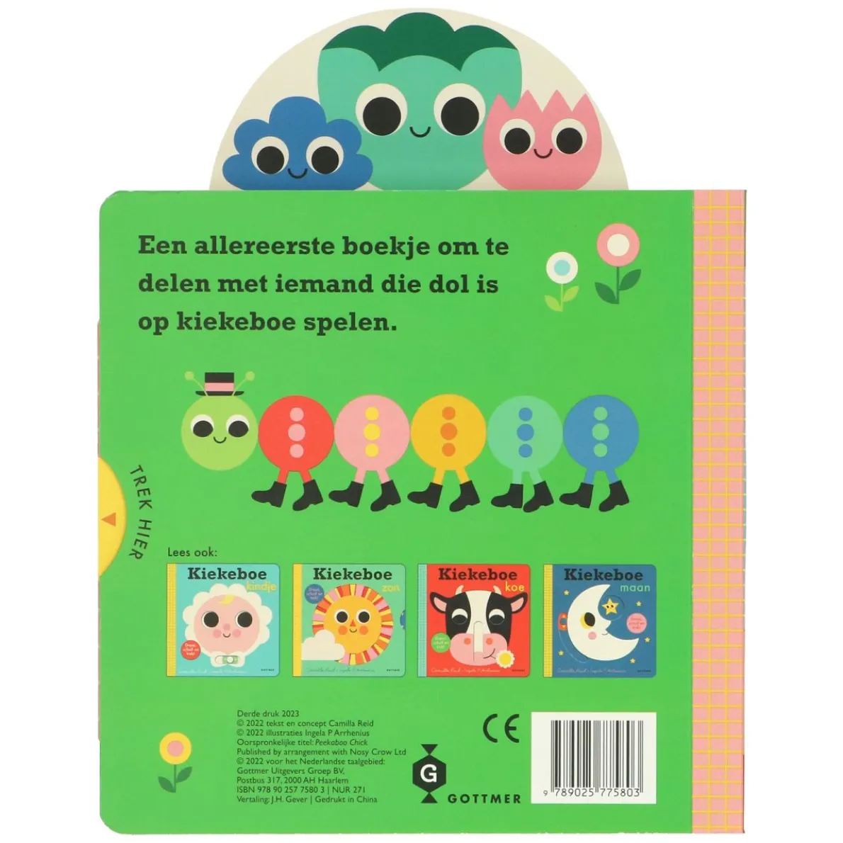 ‘Kiekeboe kuiken’ is een interactief peuterboek van karton over de lente. Met ‘Kiekeboe kuiken’ kunnen peuters op een unieke en verrassende manier op onderzoek uit. Draai, schuif en trek om alles te ontdekken! Na regen komt zonneschijn, en een regenboog! Dit onverwoestbare boekje in de populaire interactieve Kiekeboe-reeks van Ingela P Arrhenius is perfect voor het voorjaar. Het laatste staaltje kinderkamerkunst van de Zweedse illustrator en designer barst van de vrolijke kleuren en schattige dieren, te onthullen met verrassende schuifjes en wieltjes om aan te draaien. Met een spiegeltje achterin: kiekeboe kindje!