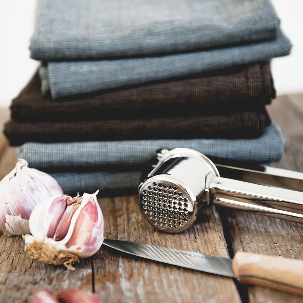 Stevige roestvrij stalen knoflookpers, met voldoende ruimte voor flinke knoflookteentjes. Geschikt voor de afwasmachine. Lengte 20 cm, Ø persje 3,5 cm.