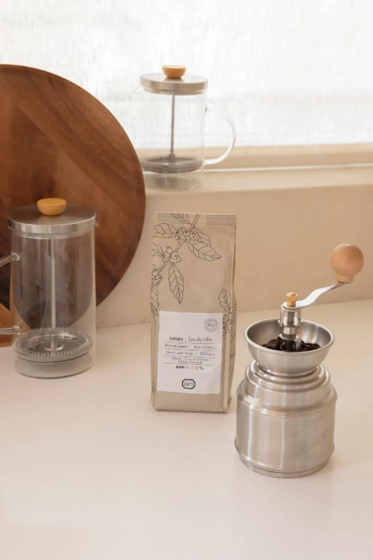 Het geborstelde staal geeft de koffiemolen een zachte, matte glans.