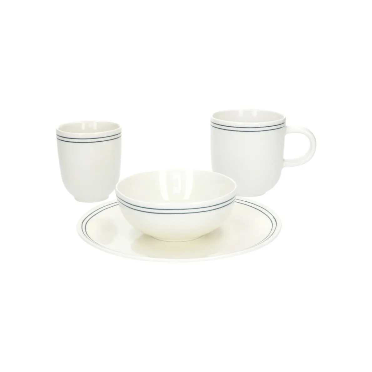 Ideaal voor je muesli of havermout, rauwkost en salade, dips en sausjes, soep, bowl gerechten, om tijdens het koken voorgesneden groente etc. in klaar te zetten: kommetjes heb je nooit genoeg. De kom is onderdeel van een serviesserie bestaande uit een beker, ontbijtbordje, theemok en dit kommetje. Een mooi organisch servies van porselein en verkrijgbaar in drie verschillende dessins. De donkerblauwe streepjes zijn een decal. Dit is een speciale folie dat op hoge temperatuur in de oven op het servies wordt gebrand. Het servies kan daardoor in de vaatwasser. De verschillende printjes – ontworpen door Dille & Kamille – passen leuk bij elkaar, maar zijn ook een mooie aanvulling op ons organisch gevormde witte servies.