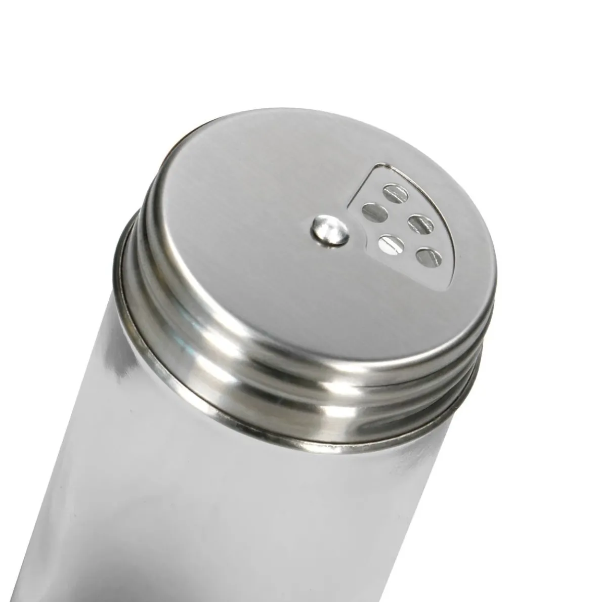 Recht, cilindervormig potje voor het bewaren van kruiden en specerijen. Het rvs deksel heeft verstelbare strooiopeningen voor grof en fijn strooien.