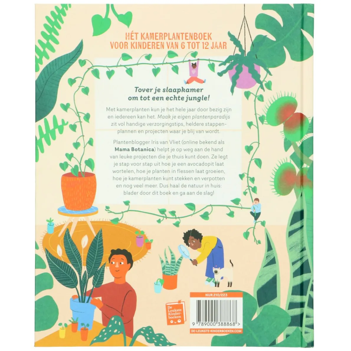 Hét kamerplantenboek voor kinderen van 6 tot 12 jaarMet kamerplanten kun je het hele jaar door bezig zijn en iedereen kan het. Maak je eigen plantenparadijs zit vol handige verzorgingstips, heldere stappenplannen en projecten waar je blij van wordt. Plantenblogger Iris van Vliet (online bekend als Mama Botanica) helpt je op weg aan de hand van leuke projecten die je thuis kunt doen. Ze legt je stap voor stap uit hoe je een avocadopit laat wortelen, hoe je planten in fl essen laat groeien, hoe je kamerplanten kunt stekken en verpotten en nog veel meer. Dus haal de natuur in huis: blader door dit boek en ga aan de slag!Maak je eigen plantenparadijs – Mama Botanica’s kamerplantenboek voor kinderen is het allerleukste kinderboek over kamerplanten stekken en verzorgen, voor kinderen vanaf 6 jaar. Met dit boek vol groene inspiratie haal je de natuur in huis!