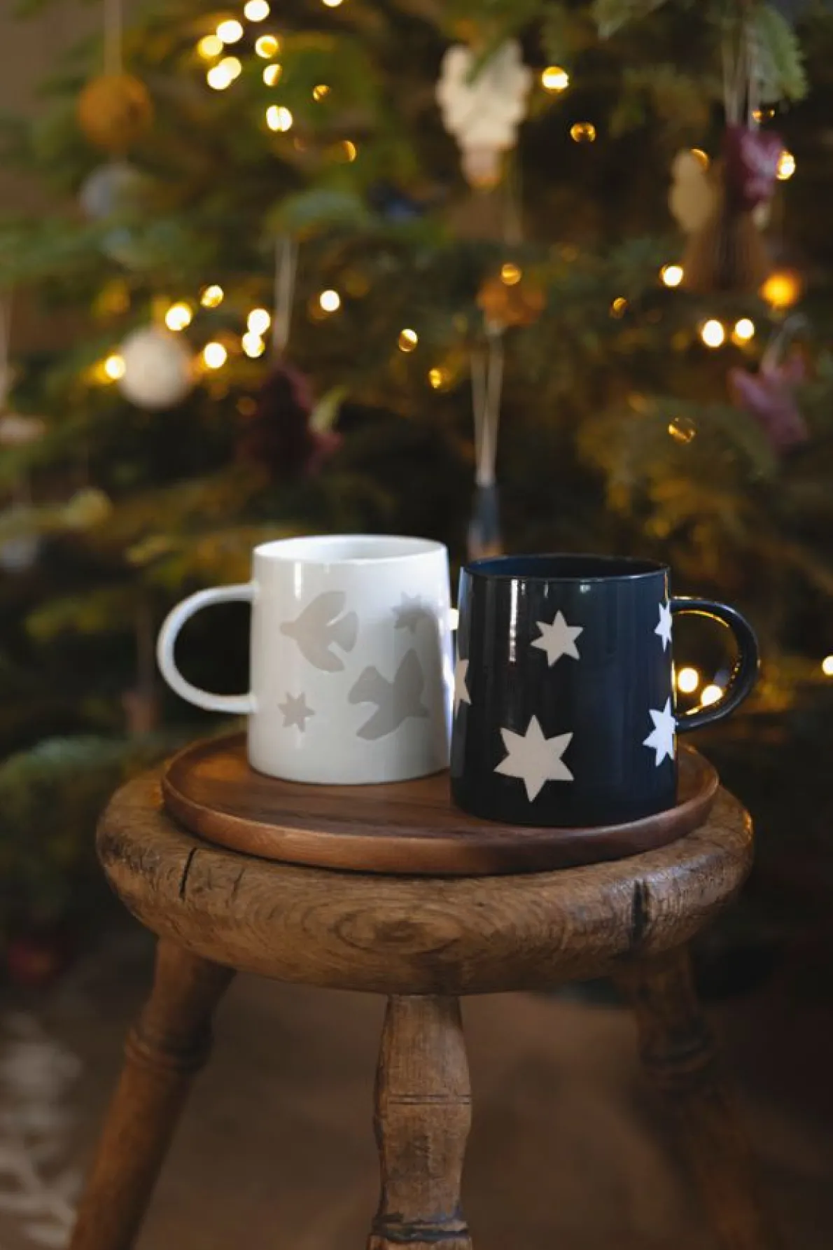 Extra grote mok van steengoed met vredesduifjes en sterren. Deze beker met oor is dankzij zijn grote formaat extra fijn voor thee, warme chocolademelk, soep etc. Steengoed is een extra sterke soort aardewerk.
