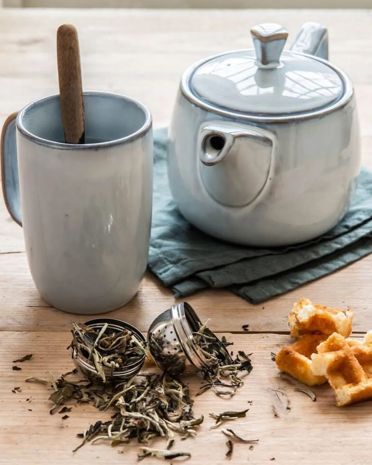 Dit prachtige steengoed servies in de tijdloze kleuren grijs en groen, heeft een reactieve glazuur. Door deze glazuur ontstaat een bijzonder kleurpatroon waardoor ieder item er uniek uitziet en het servies extra glans geeft aan een mooi gedekte tafel.