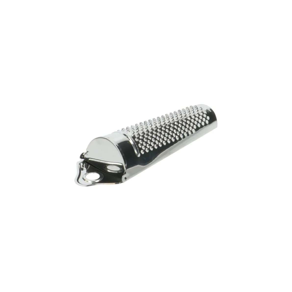 Raspje voor nootmuskaatbolletjes, onder het klepje kan het bolletje worden bewaard. Versgeraspte nootmuskaat heeft veel meer smaak en geur dan nootmuskaatpoeder. Met ophangoogje.