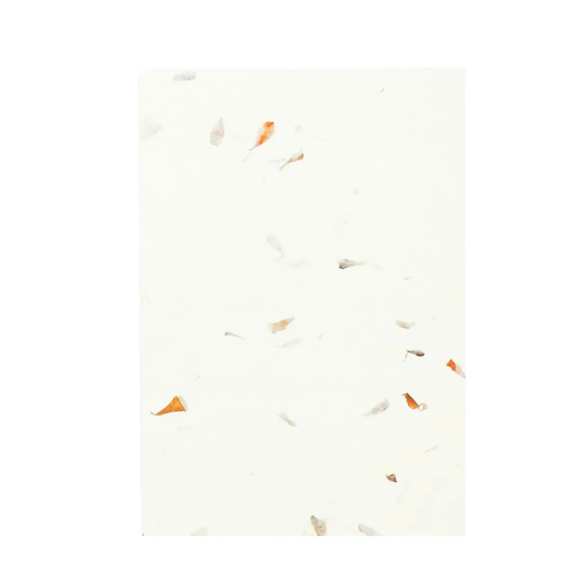 Handig notitieboek voor op school, thuis of op het werk om aantekeningen, ideeën etc. in te noteren. Het schrift heeft blanco pagina’s. De kaft is subtiel bedrukt met droogbloemen. Het papier voor dit schrift is gemaakt van versnipperd katoenafval van de textiel industrie.