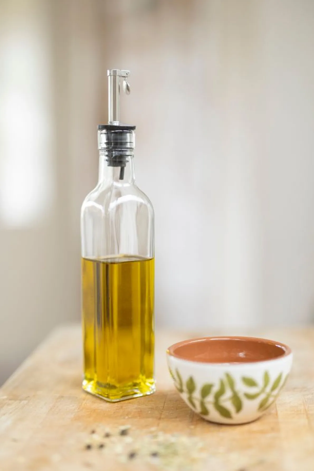 Elegant glazen flesje met roestvrijstalen schenkdop en afsluitdopje. Voor olie, azijn, dressings etc. Geschikt voor de afwasmachine. Afmetingen 4 x 4 x 27 cm.