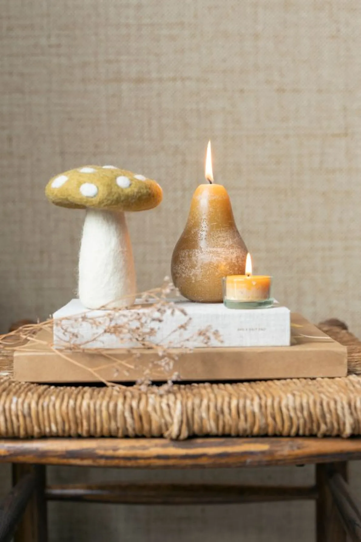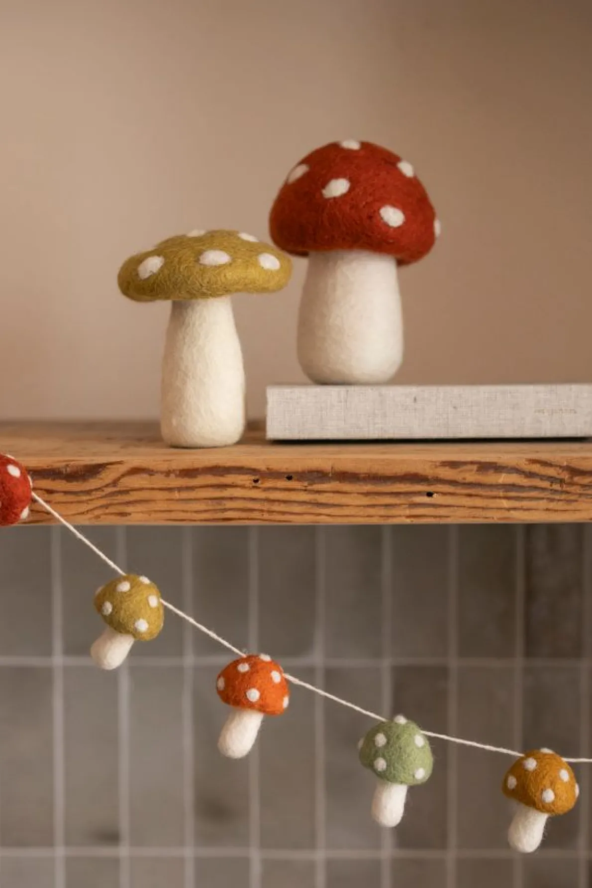 De herfst is hét seizoen om het binnen extra gezellig te maken. Met deze staande vilten paddenstoel bijvoorbeeld, geel met witte stippen. Hiermee maak je zo een knus en sfeervol herfsthoekje in je huis! Combineer de paddenstoel bijvoorbeeld met andere vilten figuurtjes en eigen herfstige natuurvondsten zoals kastanjes en mooi verkleurde bladeren. Omdat dit een handgemaakt product is, kunnen de afmetingen en kleuren van paddenstoel tot paddenstoel enigszins verschillen. Deze paddenstoel is speciaal ontworpen voor Dille & Kamille en met de hand gemaakt door vrouwen in Nepal, van Nieuw-Zeelandse schapenwol. Onze vaste leverancier van prachtige Fair Trade vilten artikelen helpt hen om hun sociale en economische positie en die van hun gezin te verbeteren. Dit biedt, behalve een vast inkomen, ook een veilige werkplek.