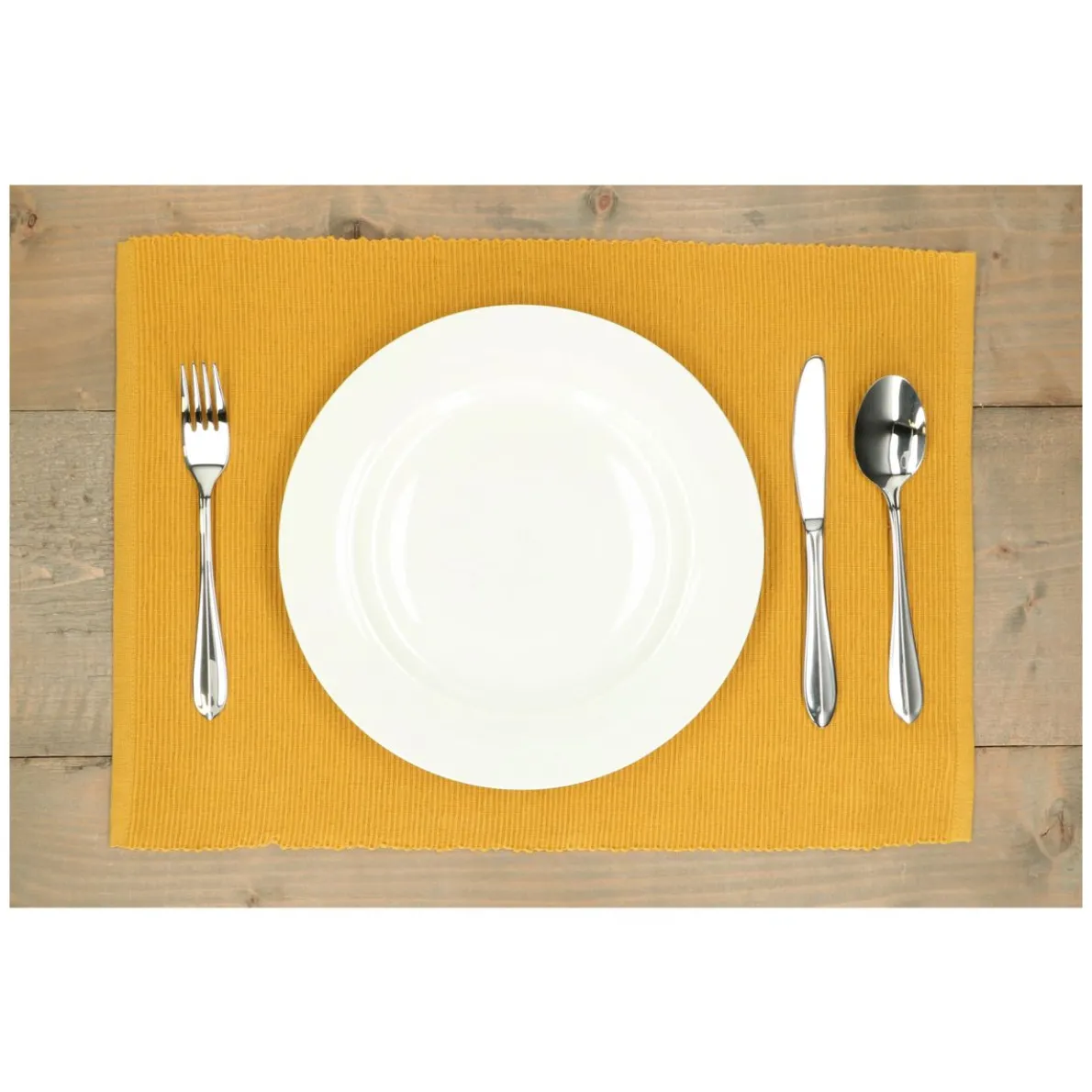 Met deze okergele placemat heb je in een handomdraai een gezellig gedekte tafel en houd je het tafelblad netjes en schoon. Mooi om zo op tafel te leggen of in combinatie met een bijpassend tafelkleed.