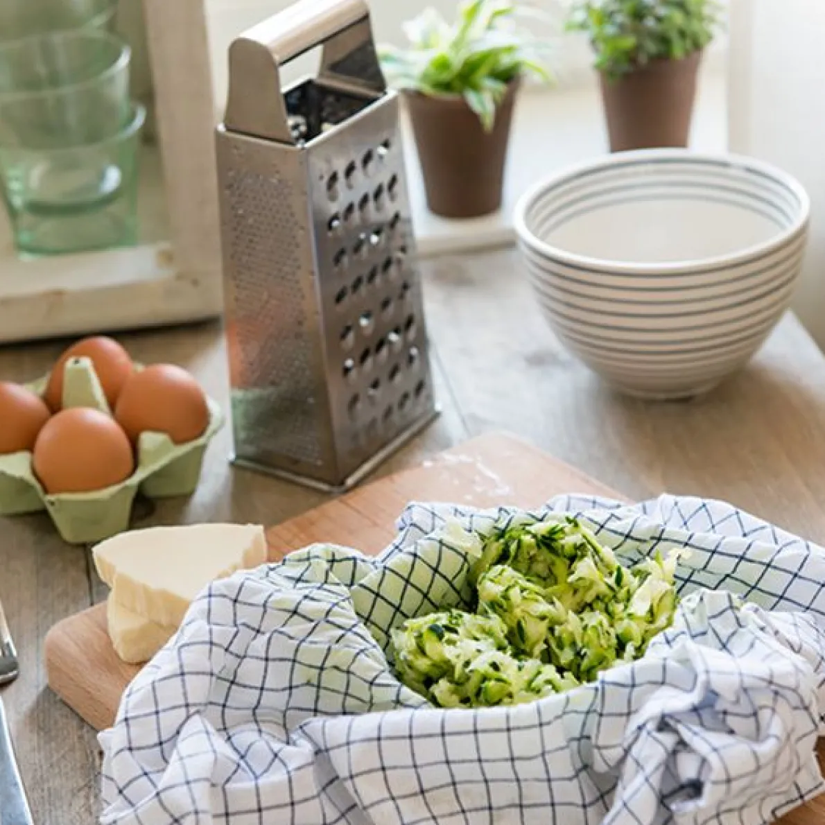 De grote gaten zijn bedoeld om grof te raspen of plakjes te maken van bijvoorbeeld chocola, appel of knoflook.