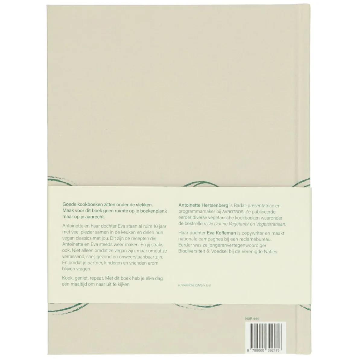 Een paar jaar geleden daagde Eva Koffeman haar moeder ? tv-presentatrice en vegetarisch kookboekenschrijfster Antoinette Hertsenberg ? uit om een maand lang plantaardig te eten. Sindsdien hebben ze het vegan koken niet meer losgelaten. Vier jaar lang lieten ze vrienden en familie meeproeven en oefenden ze net zo lang tot alle smaken klopten. Dat resulteerde in dit kookboek. Van ontbijtjes, salades, hoofd- en bijgerechten tot toetjes en drankjes. Dit zijn de recepten die Antoinette en Eva steeds weer maken. En jij straks ook. Niet eens omdat ze vegan zijn, maar omdat ze makkelijk, gezond, licht, snel en onweerstaanbaar zijn. Dit is geen boek voor op de koffietafel, maar voor op het aanrecht.