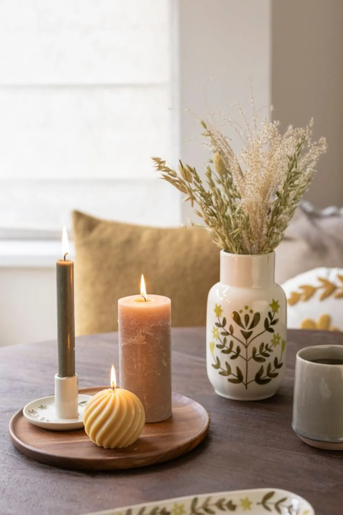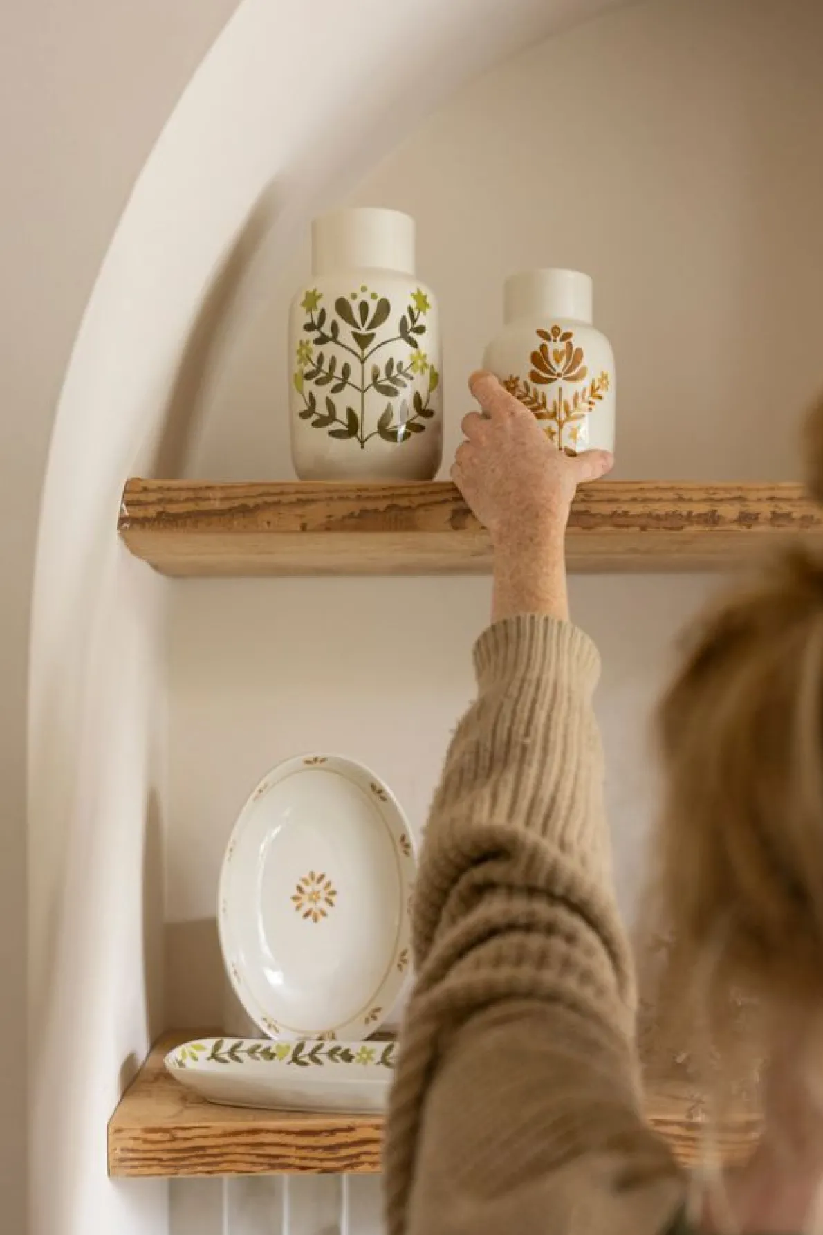 Deze schaal van steengoed is handbeschilderd met een mooi groen motief. Hierdoor is elke schaal uniek! Het dessin is een eigen ontwerp van Dille & Kamille. Mooi te combineren met kandelaren en vaasjes met hetzelfde motief op een sfeervol gedekte tafel.