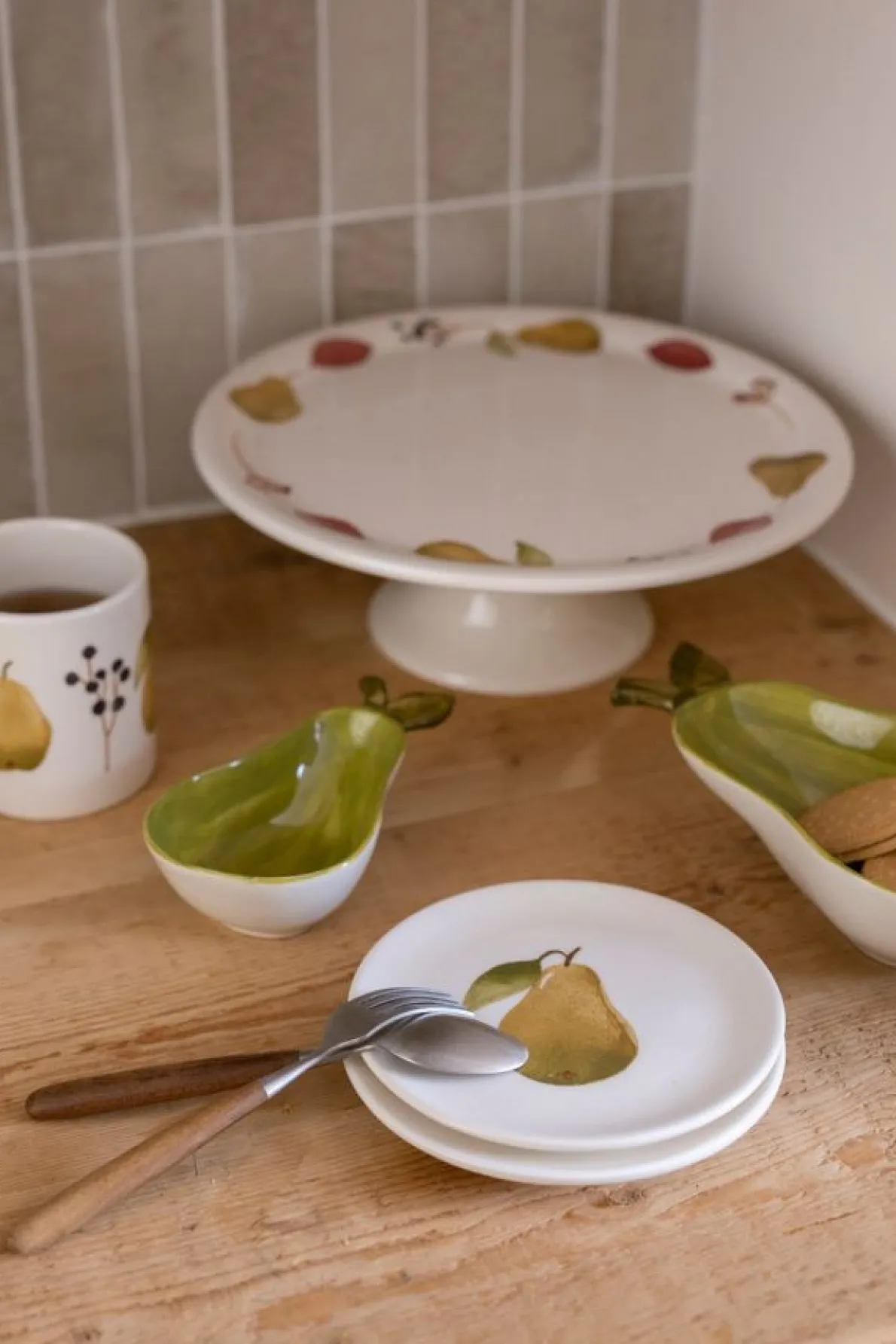 Leuke schaal in de vorm van een peer. Het schaaltje is gemaakt van steengoed en met de hand beschilderd. Leuk voor het serveren van koekjes, chocolaatjes of zoutjes, maar hij is ook decoratief om zo op tafel te zetten. Mooi te combineren met onze houten schaaltjes. Verkrijgbaar in twee maten.