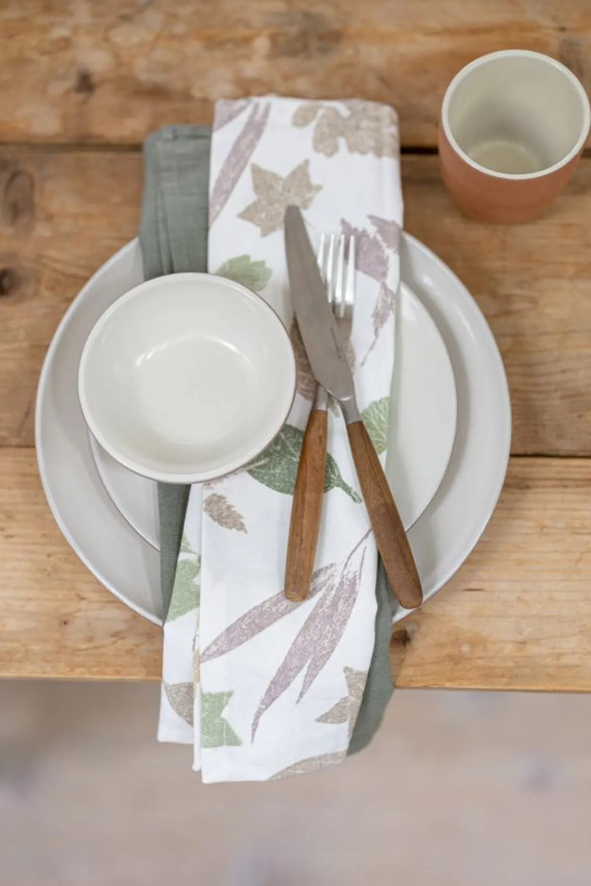 Sfeervol servet om je tafel extra gastvrij te dekken. Dit servet is bedrukt met verschillende ‘gestempelde’ bladeren in mooie groentinten, en goed te combineren met een bijpassend tafelkleed en/of bijpassende tafelloper.Het servet is gemaakt van GOTS gecertificeerd biologisch katoen. GOTS is een internationale standaard voor biologisch katoen en geeft aan dat ons bio-katoen op een verantwoorde manier wordt geteeld en verwerkt met respect voor mens en natuur.