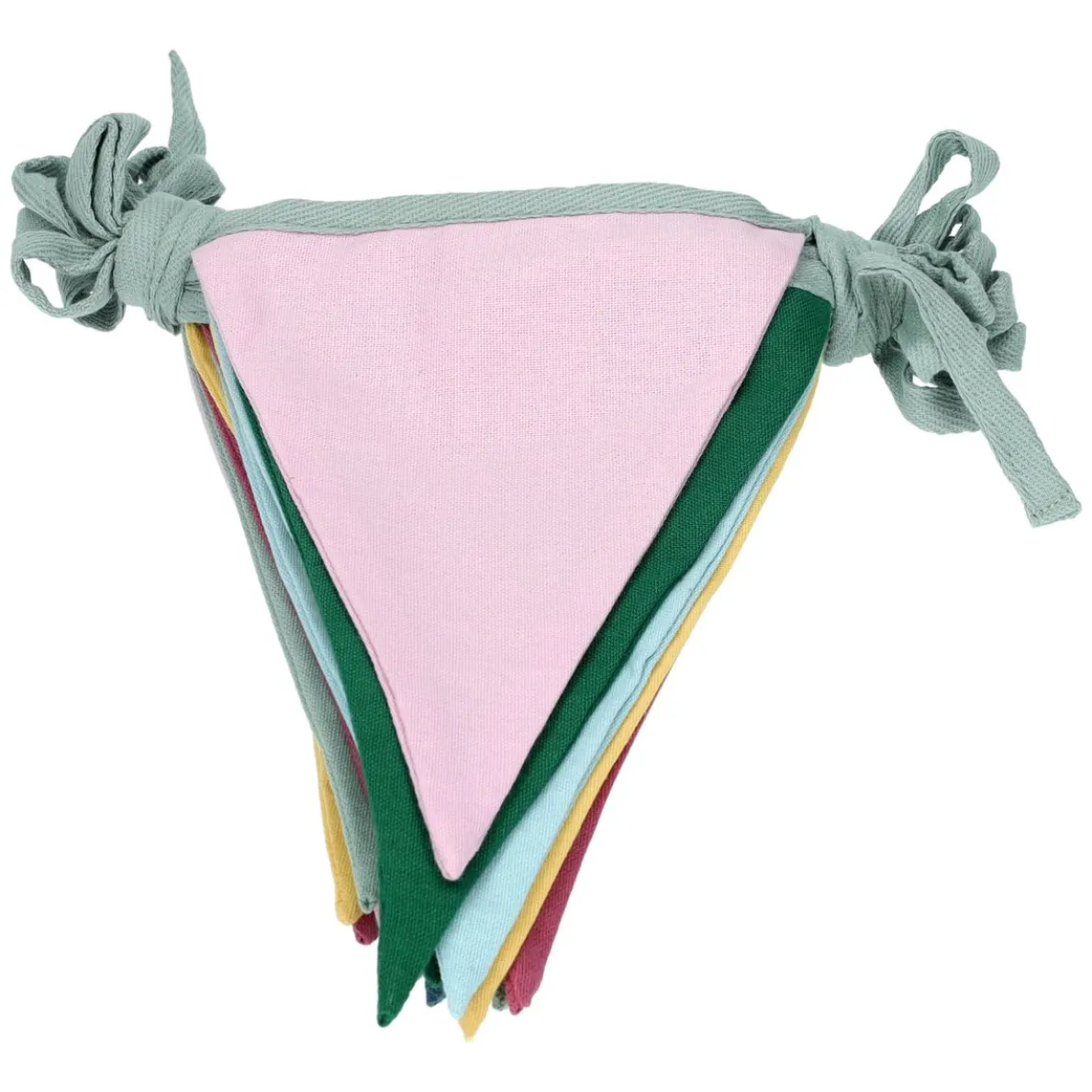 Maak van elke dag een feestje met deze vrolijke vlaggenslinger! Met vlaggetjes in verschillende feestelijke kleuren. De slinger is gemaakt van bio-katoen, dus gaat lekker lang mee. Ook leuk om de speel- of kinderkamer mee op te vrolijken.